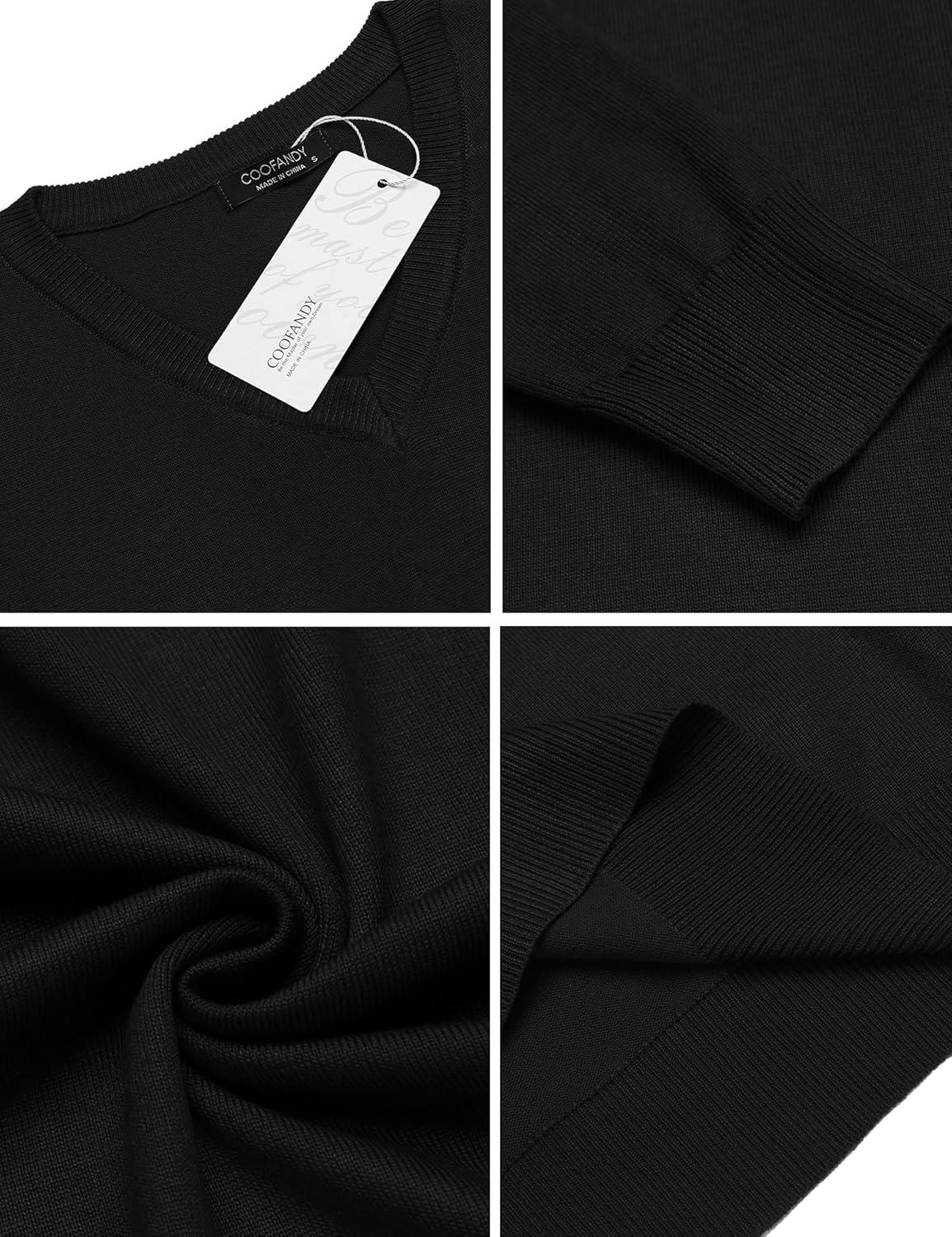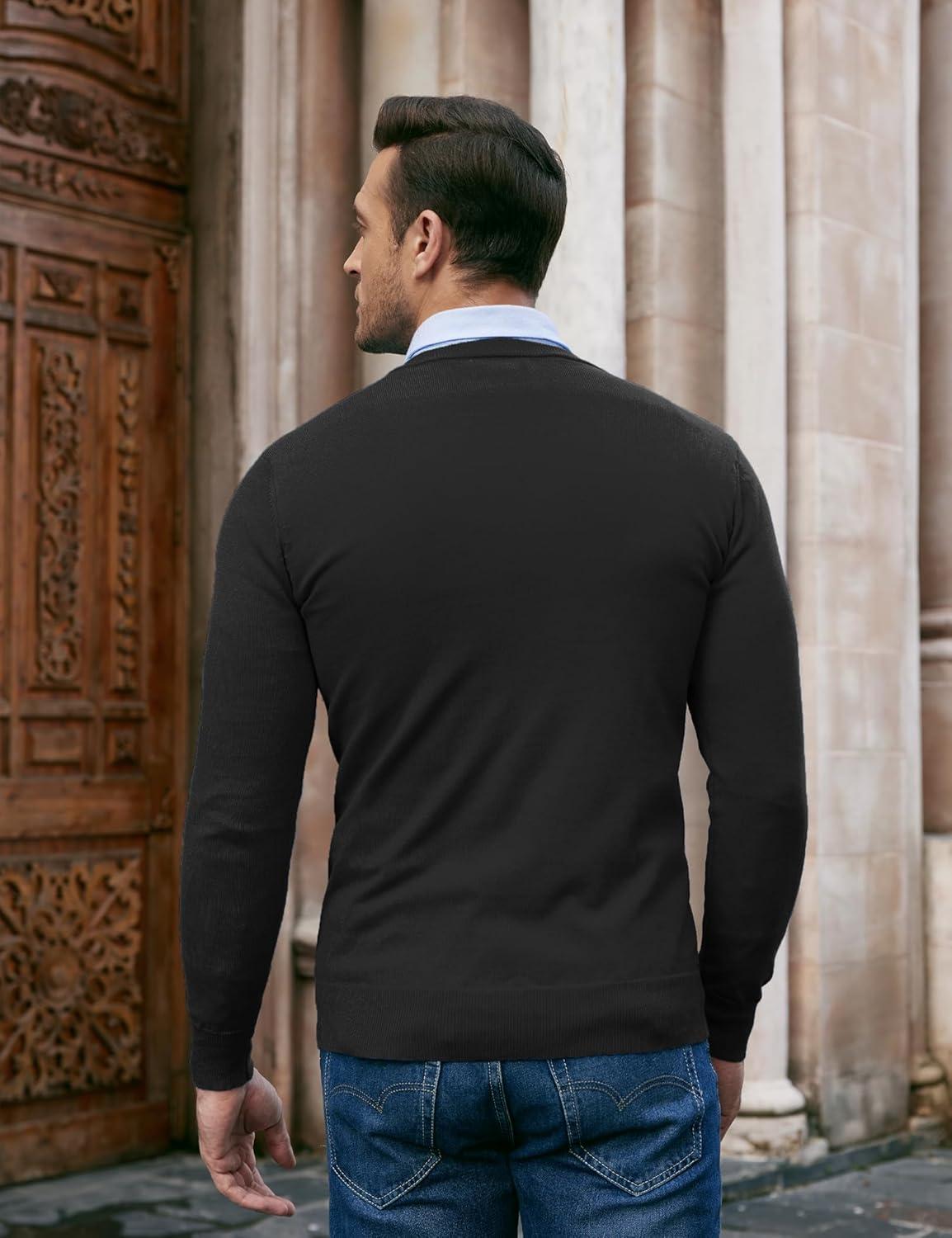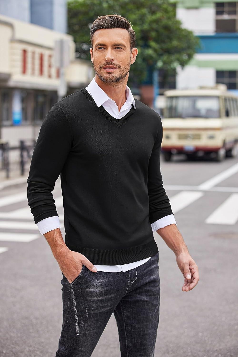 COOFANDY Men Casual V Neck Sweater Ribbed Knit Slim Fit Long Sleeve Pullover Top(Black)