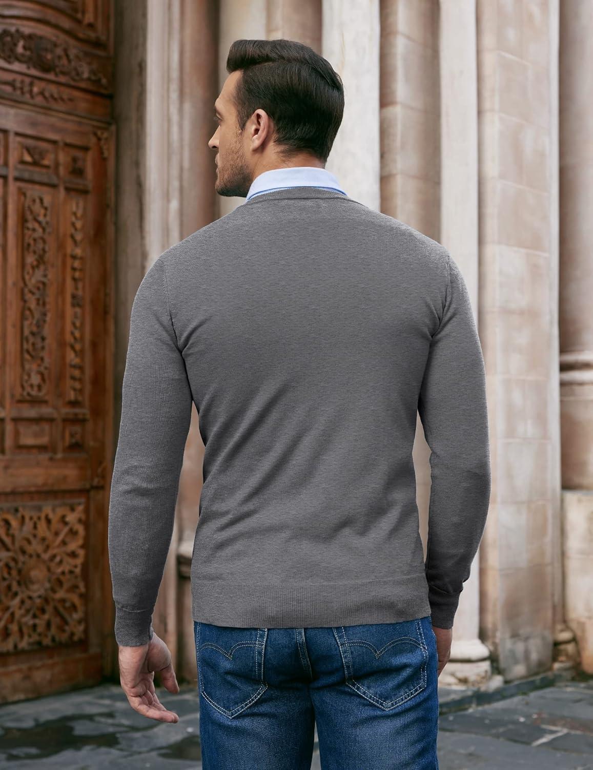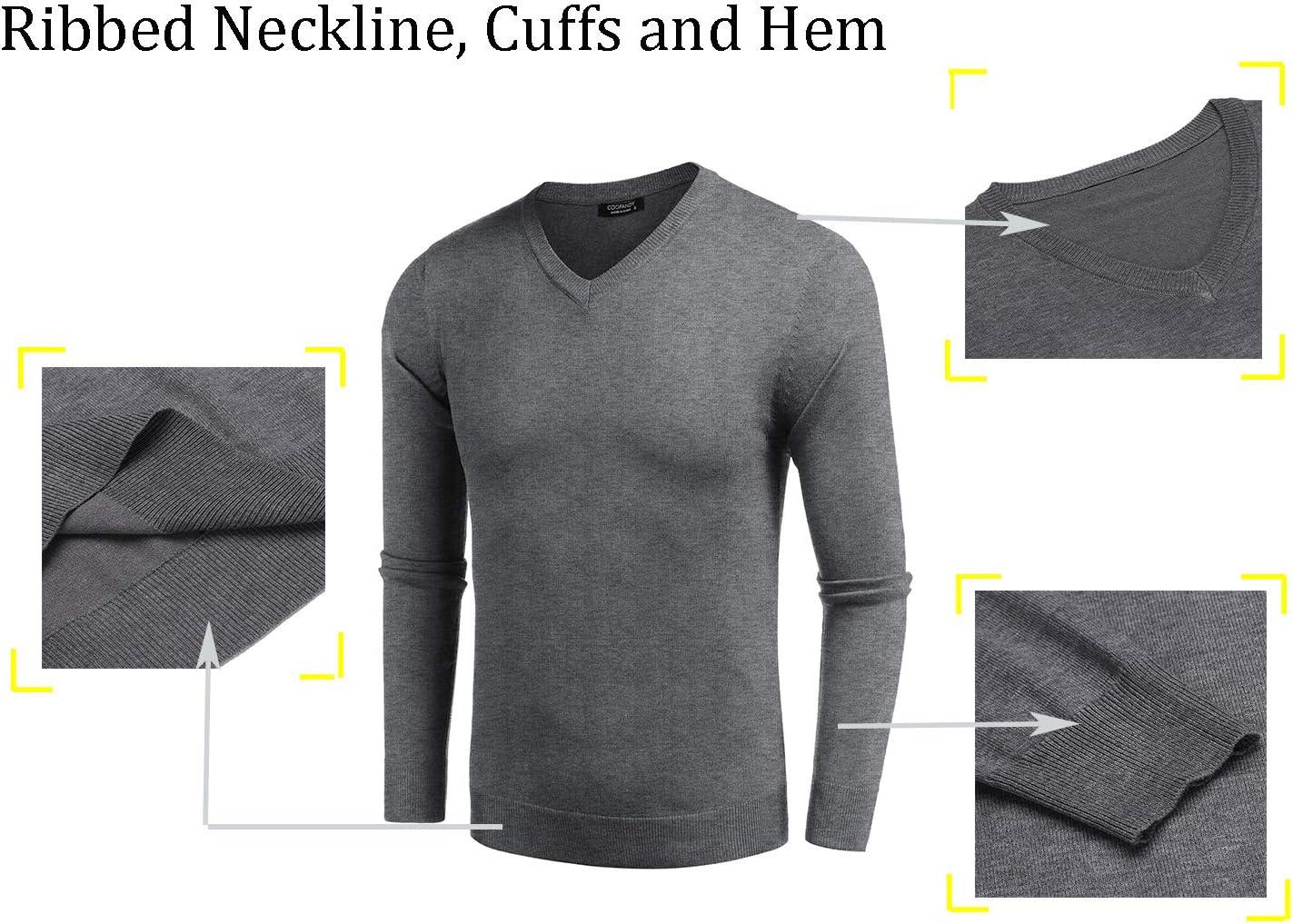 COOFANDY Men Casual V Neck Sweater Ribbed Knit Slim Fit Long Sleeve Pullover Top(Grey)
