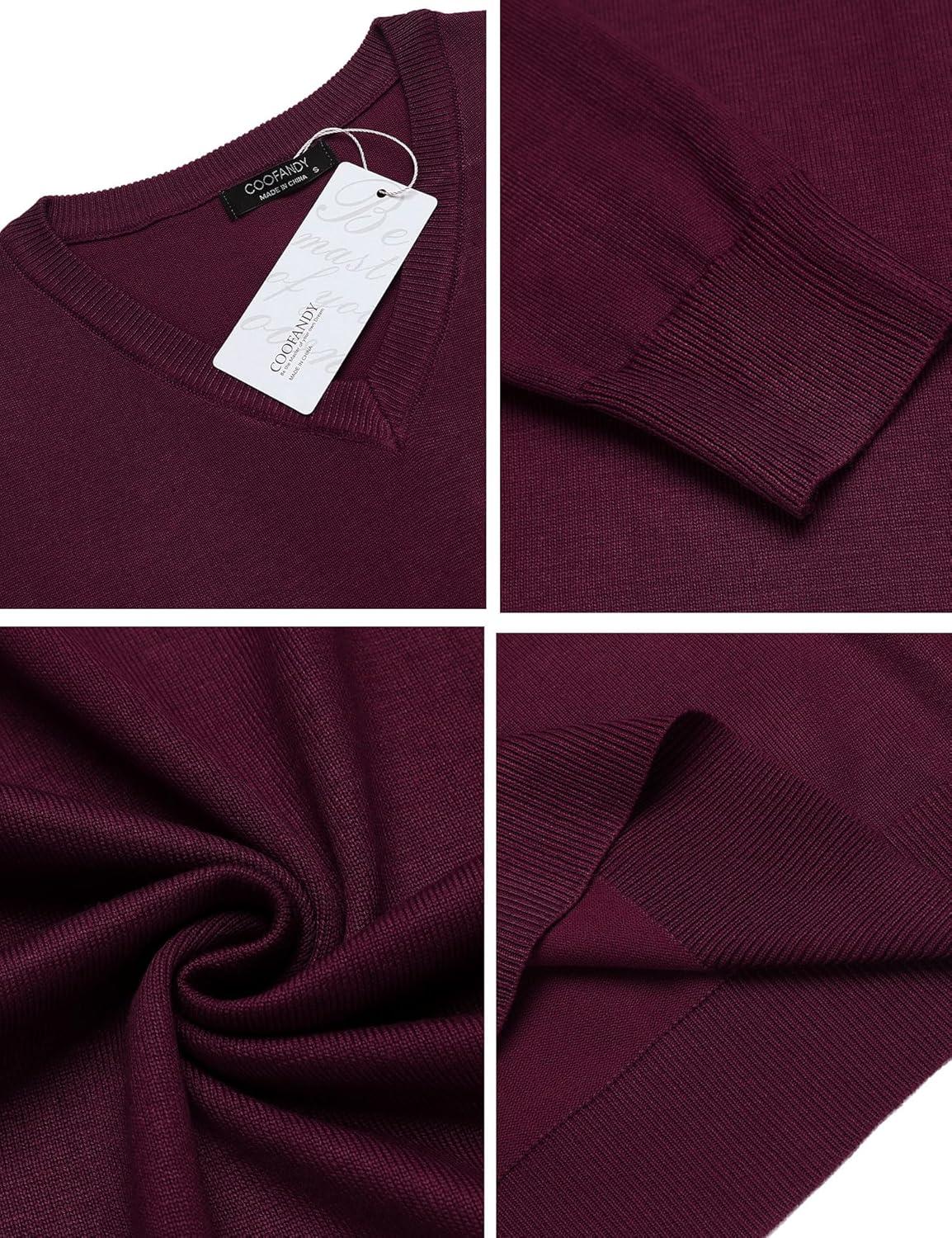 imageCOOFANDY Men Casual V Neck Sweater Ribbed Knit Slim Fit Long Sleeve Pullover TopPurple