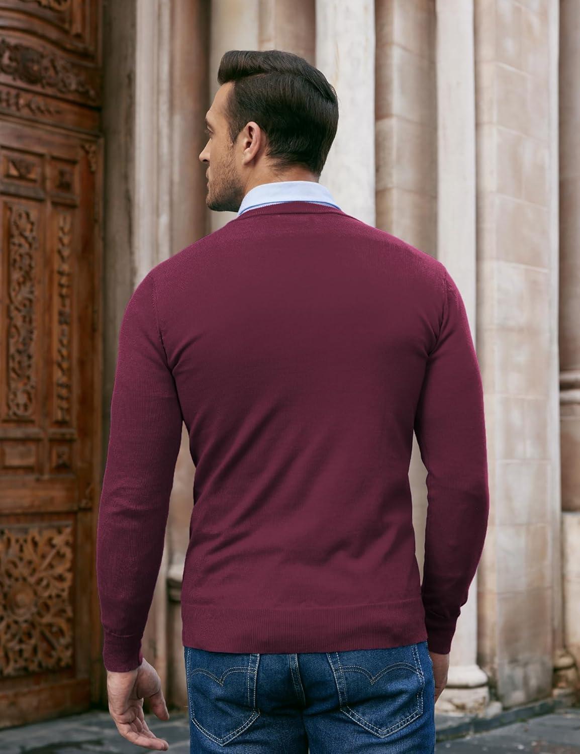 COOFANDY Men Casual V Neck Sweater Ribbed Knit Slim Fit Long Sleeve Pullover Top(Pat1)