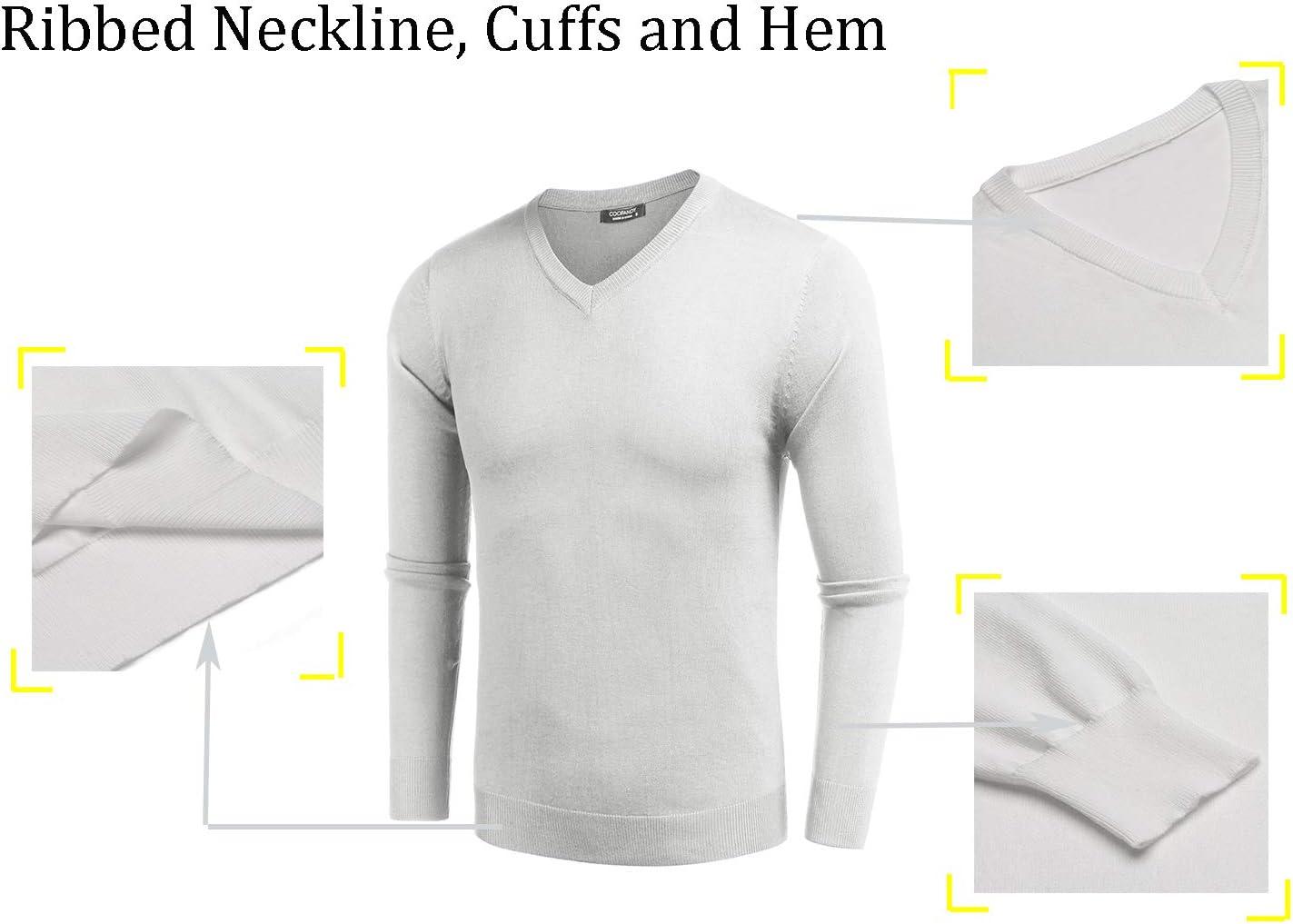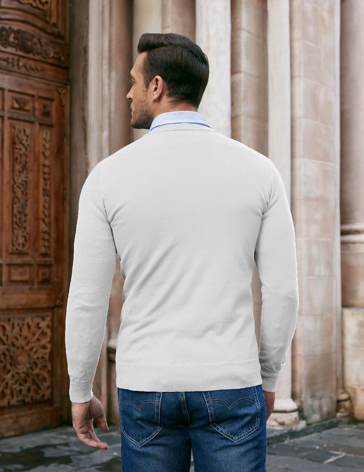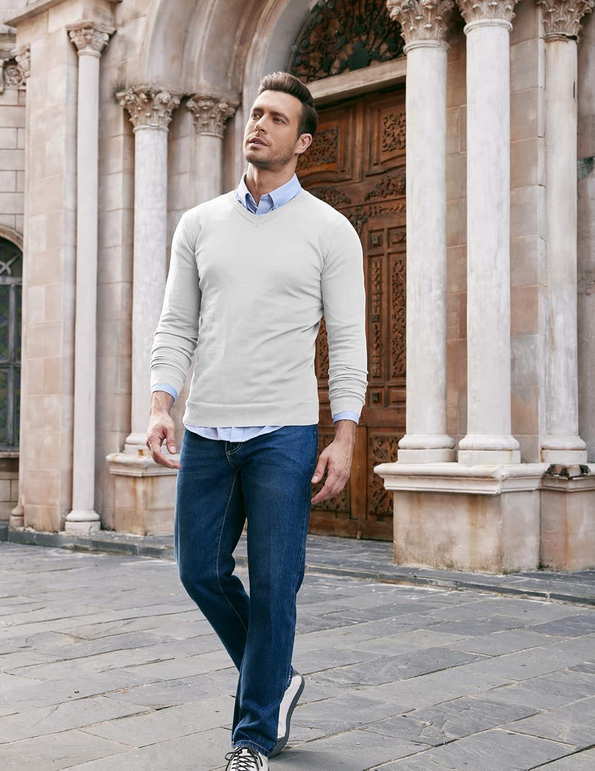 COOFANDY Men Casual V Neck Sweater Ribbed Knit Slim Fit Long Sleeve Pullover Top(White)