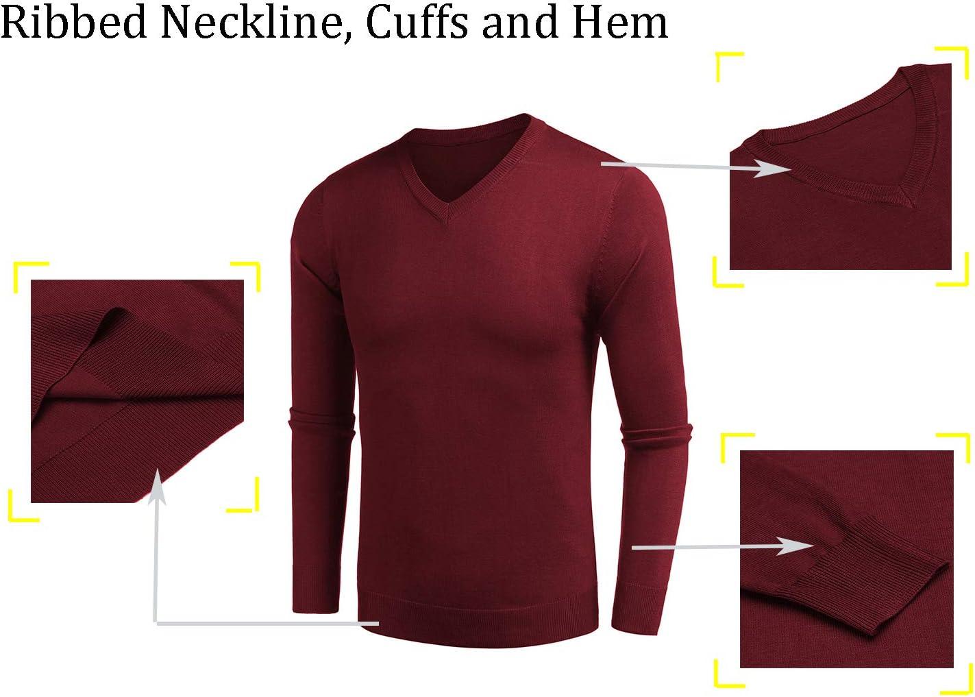 COOFANDY Men Casual V Neck Sweater Ribbed Knit Slim Fit Long Sleeve Pullover Top(Wine Red)