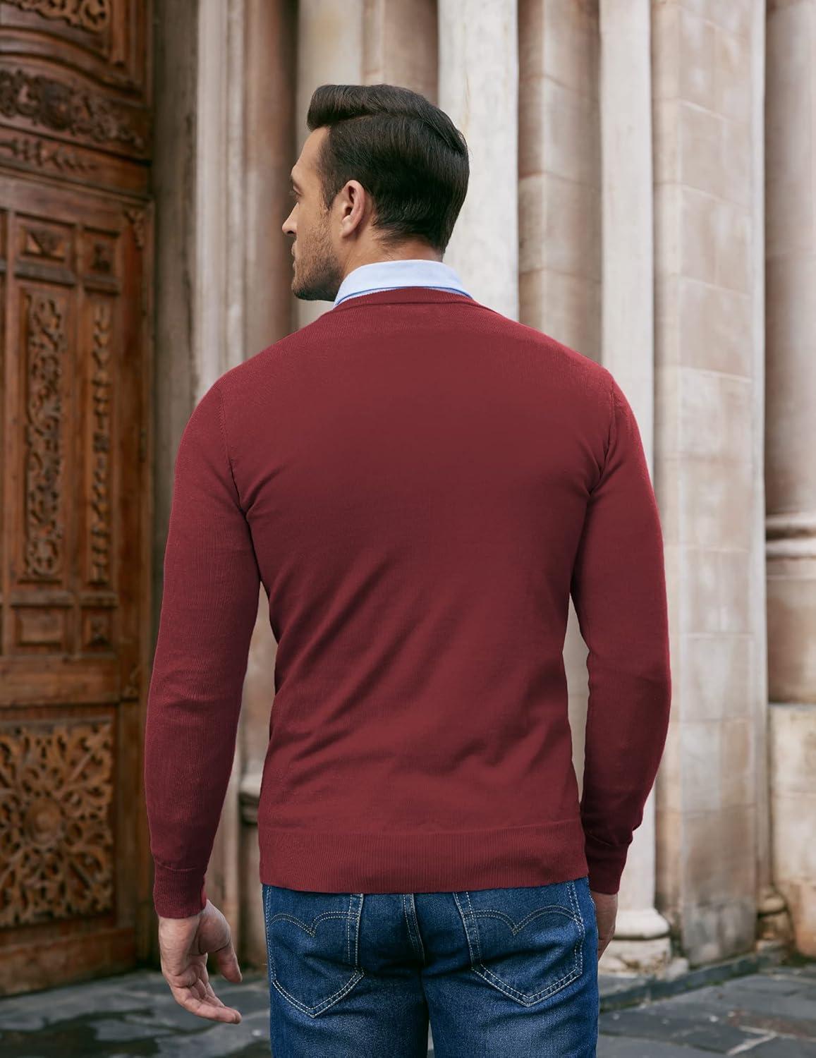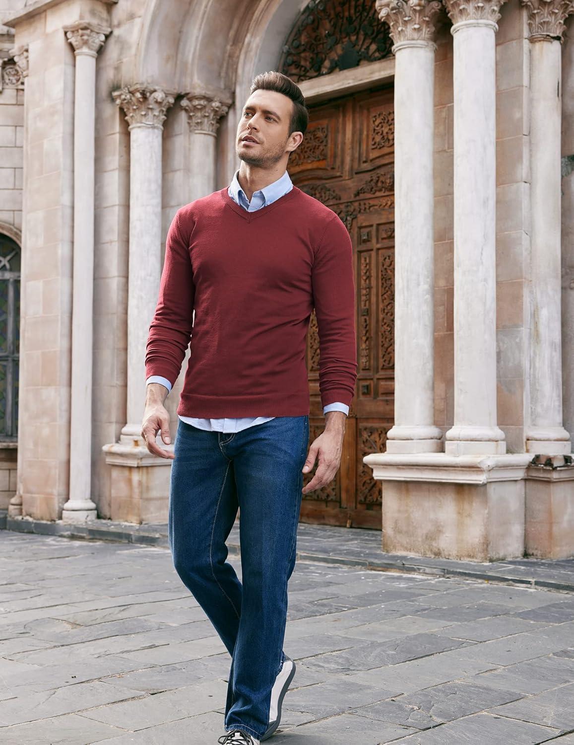 Don’t miss out on our limited-time offer: buy COOFANDY Men Casual V Neck Sweater Ribbed Knit Slim Fit Long Sleeve Pullover Top(Wine Red), get {accessory} 50% off!