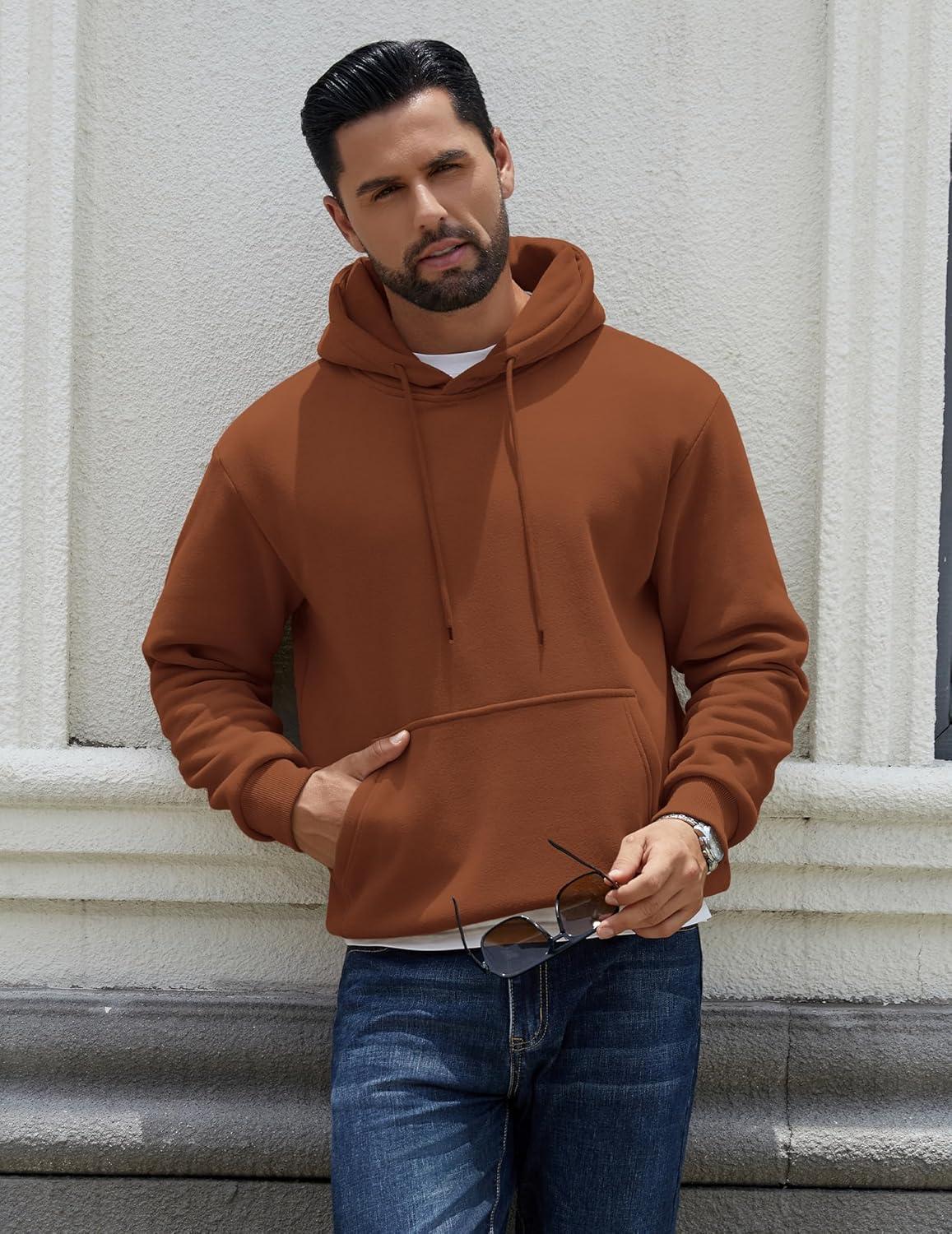COOFANDY Men Cotton Fleece Hooded Sweatshirt Casual Long Sleeve Hoodies Pullover Fashion Drawstring Hoodie with Kanga Pocket(Brown)