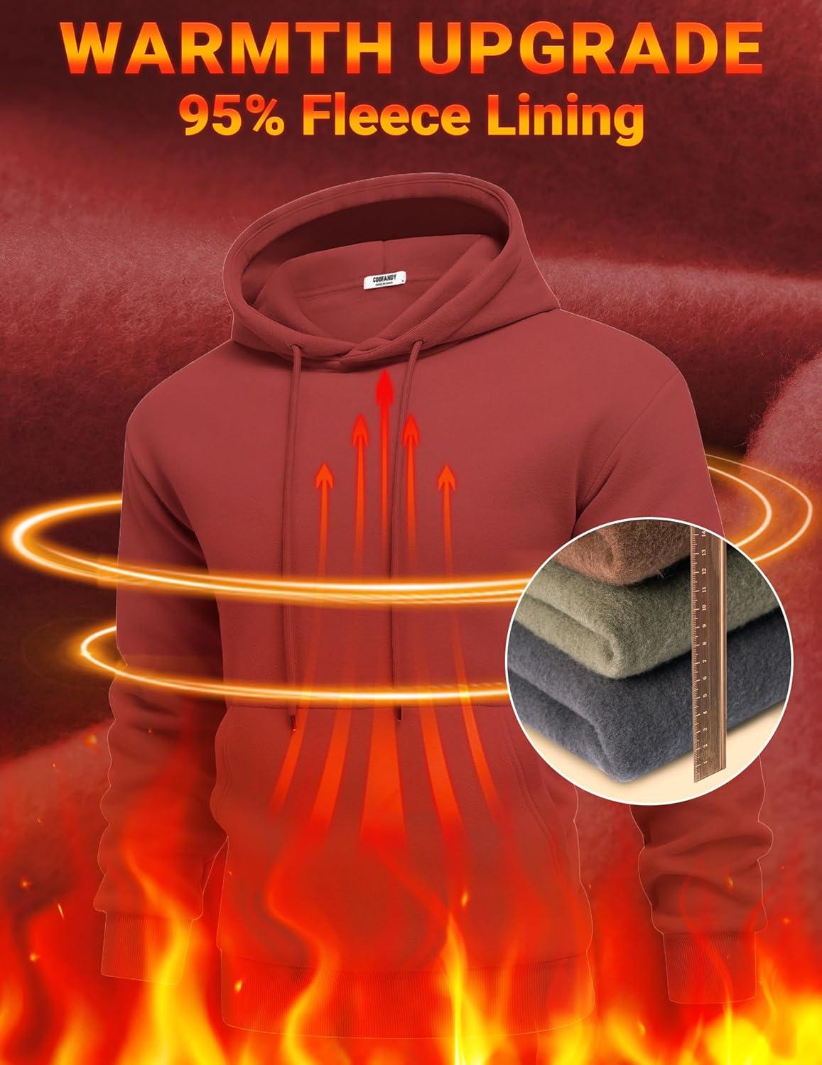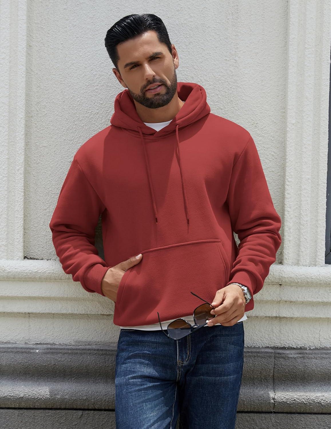 COOFANDY Men Cotton Fleece Hooded Sweatshirt Casual Long Sleeve Hoodies Pullover Fashion Drawstring Hoodie with Kanga Pocket(Red)