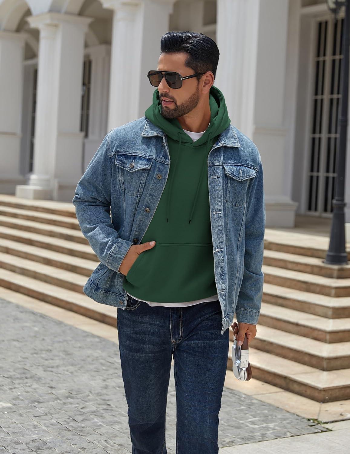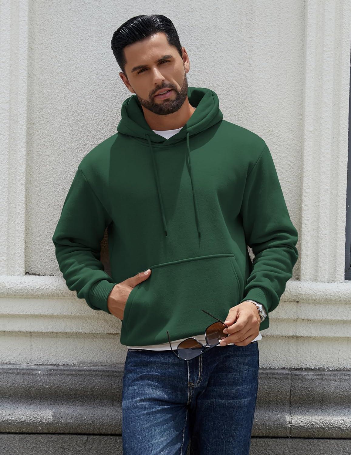COOFANDY Men Cotton Fleece Hooded Sweatshirt Casual Long Sleeve Hoodies Pullover Fashion Drawstring Hoodie with Kanga Pocket(Lake Green)