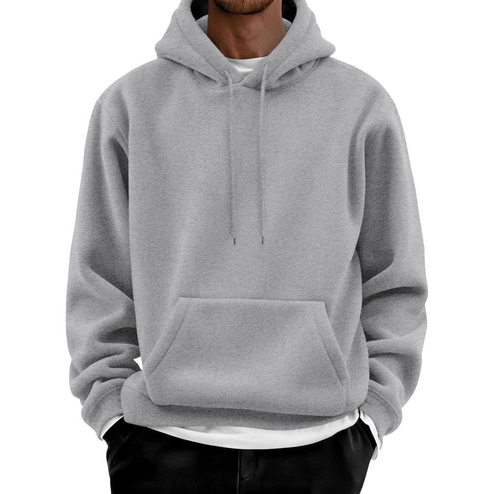 COOFANDY Men Cotton Fleece Hooded Sweatshirt Casual Long Sleeve Hoodies Pullover Fashion Drawstring Hoodie with Kanga Pocket(Light Gray)
