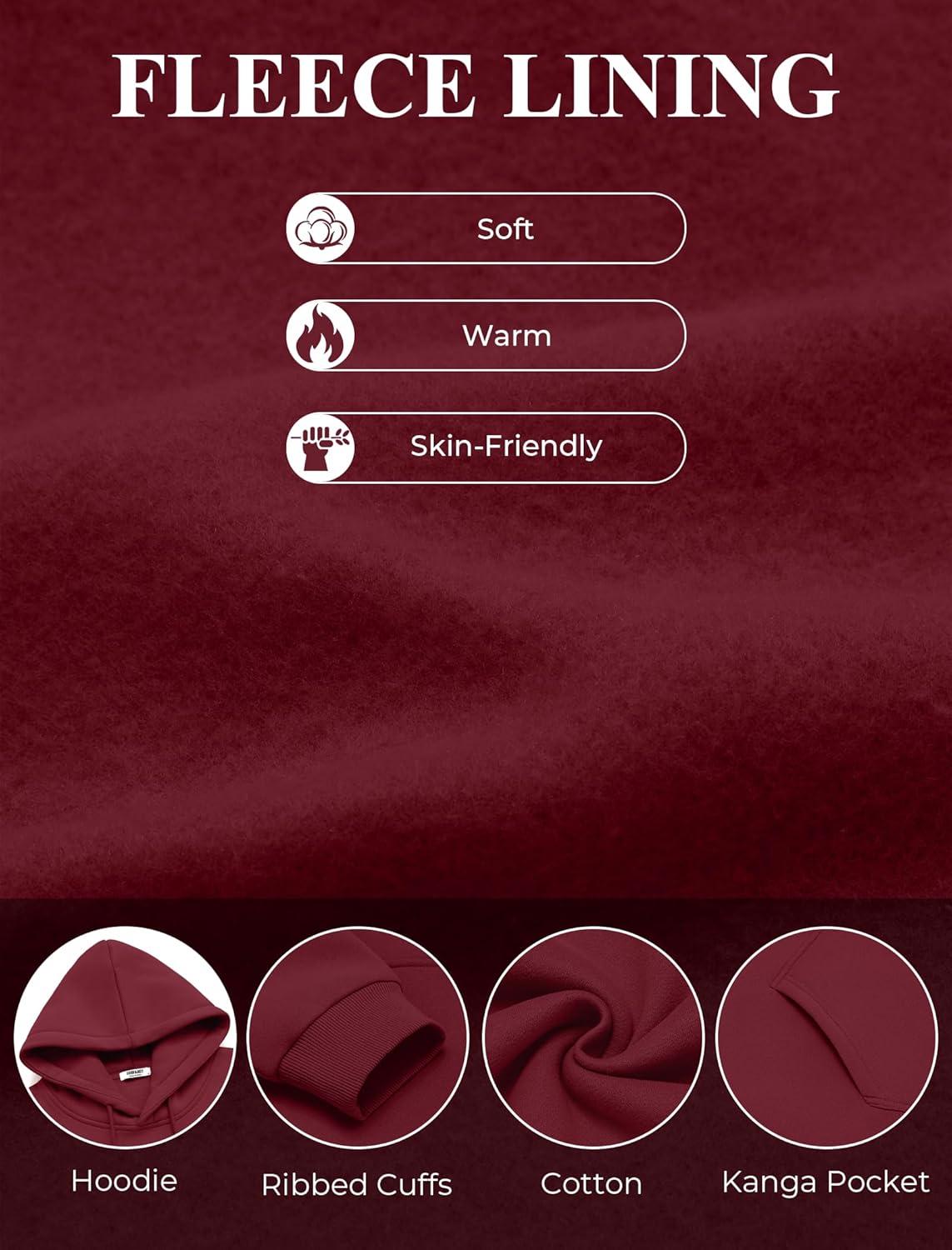 COOFANDY Men Cotton Fleece Hooded Sweatshirt Casual Long Sleeve Hoodies Pullover Fashion Drawstring Hoodie with Kanga Pocket(Wine Red)