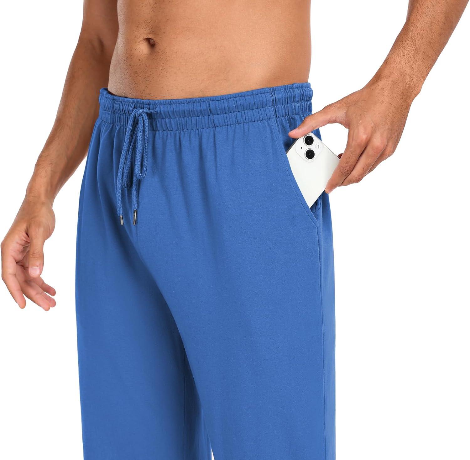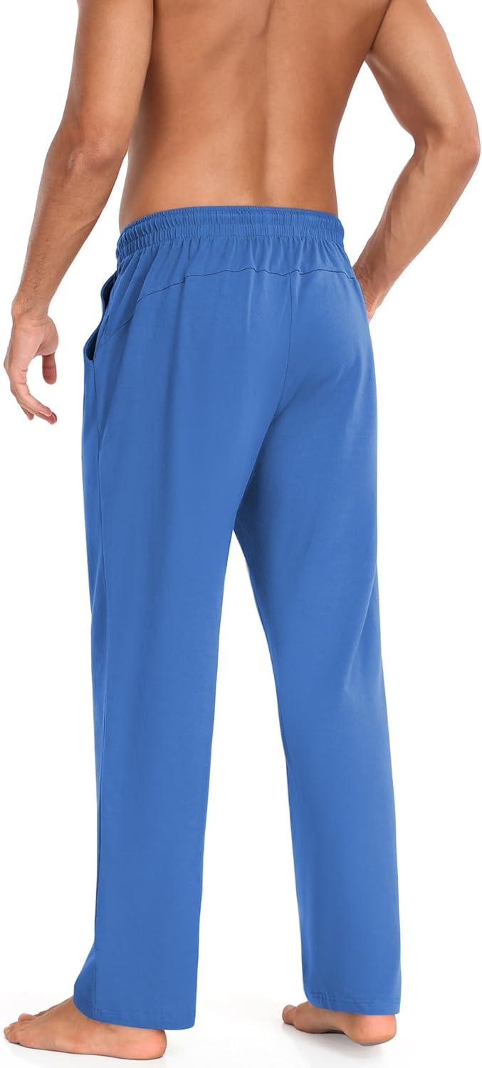 COOFANDY Men Cotton Yoga Pants Casual Sweatpants Jogger Open Bottom Lounge Pants with Pockets(Blue)