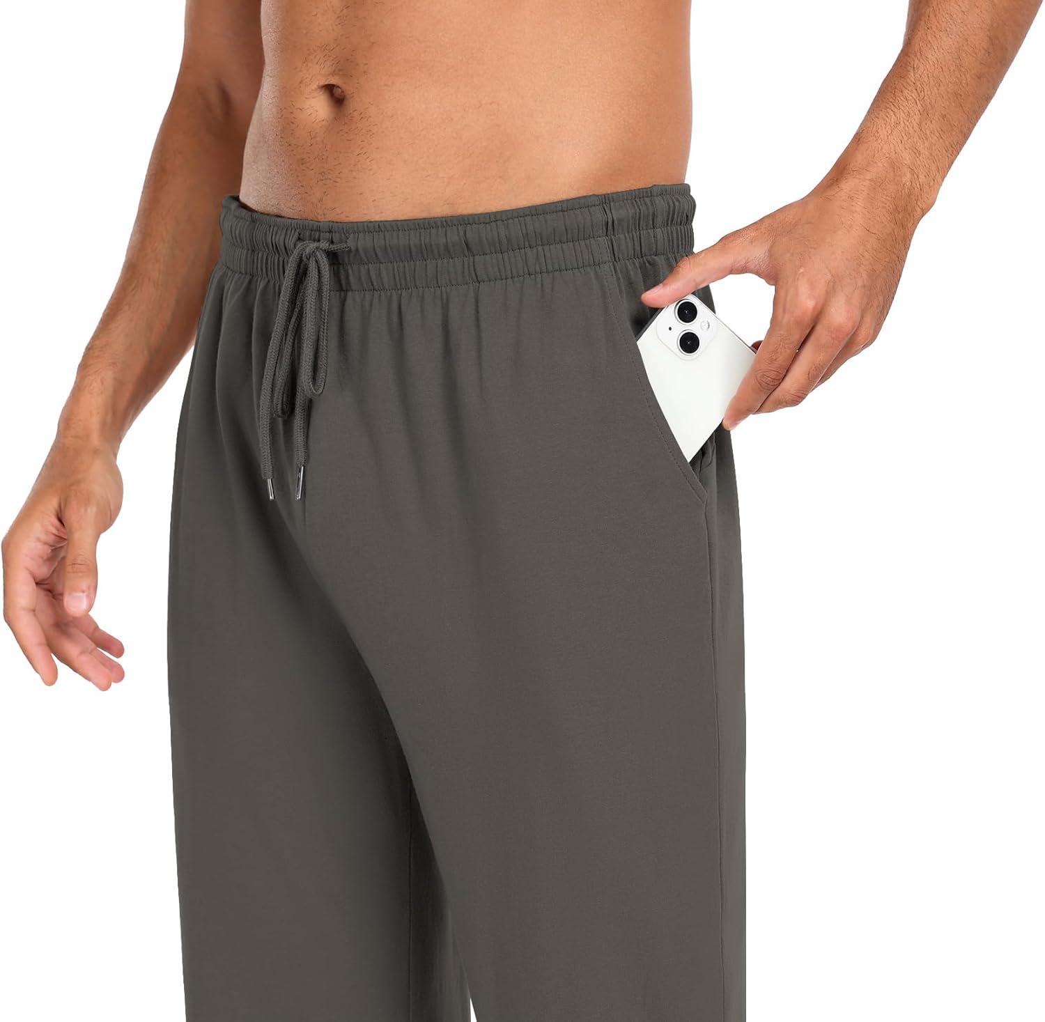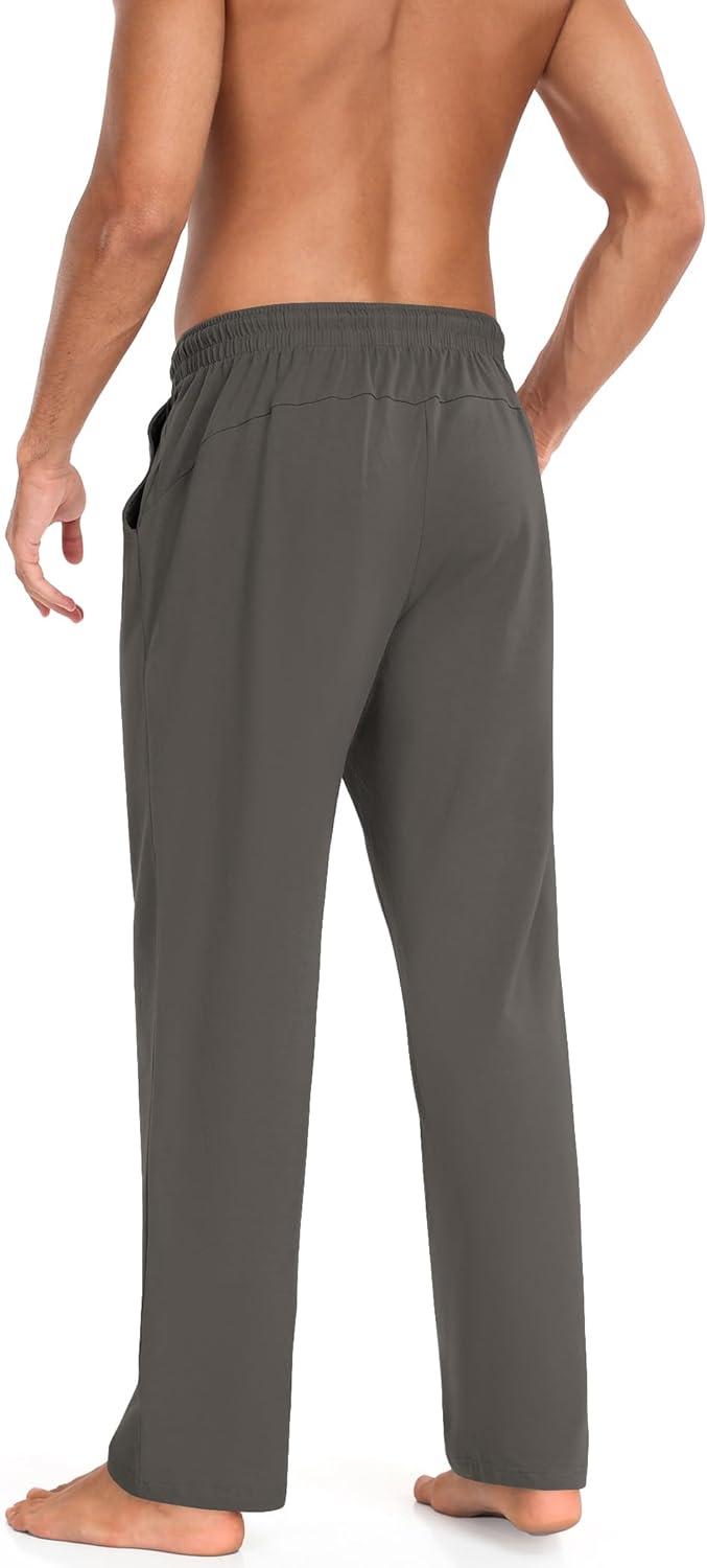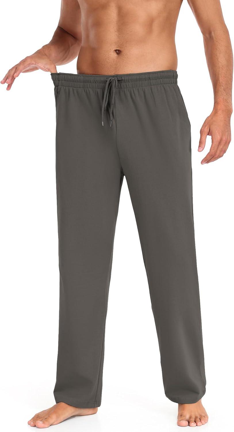 COOFANDY Men Cotton Yoga Pants Casual Sweatpants Jogger Open Bottom Lounge Pants with Pockets(Dark Heather Grey)
