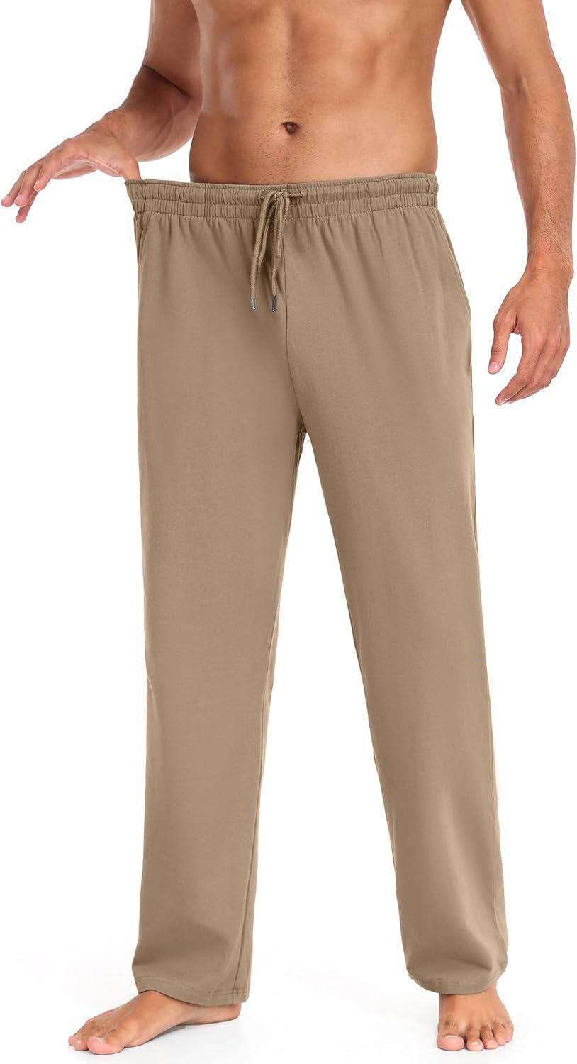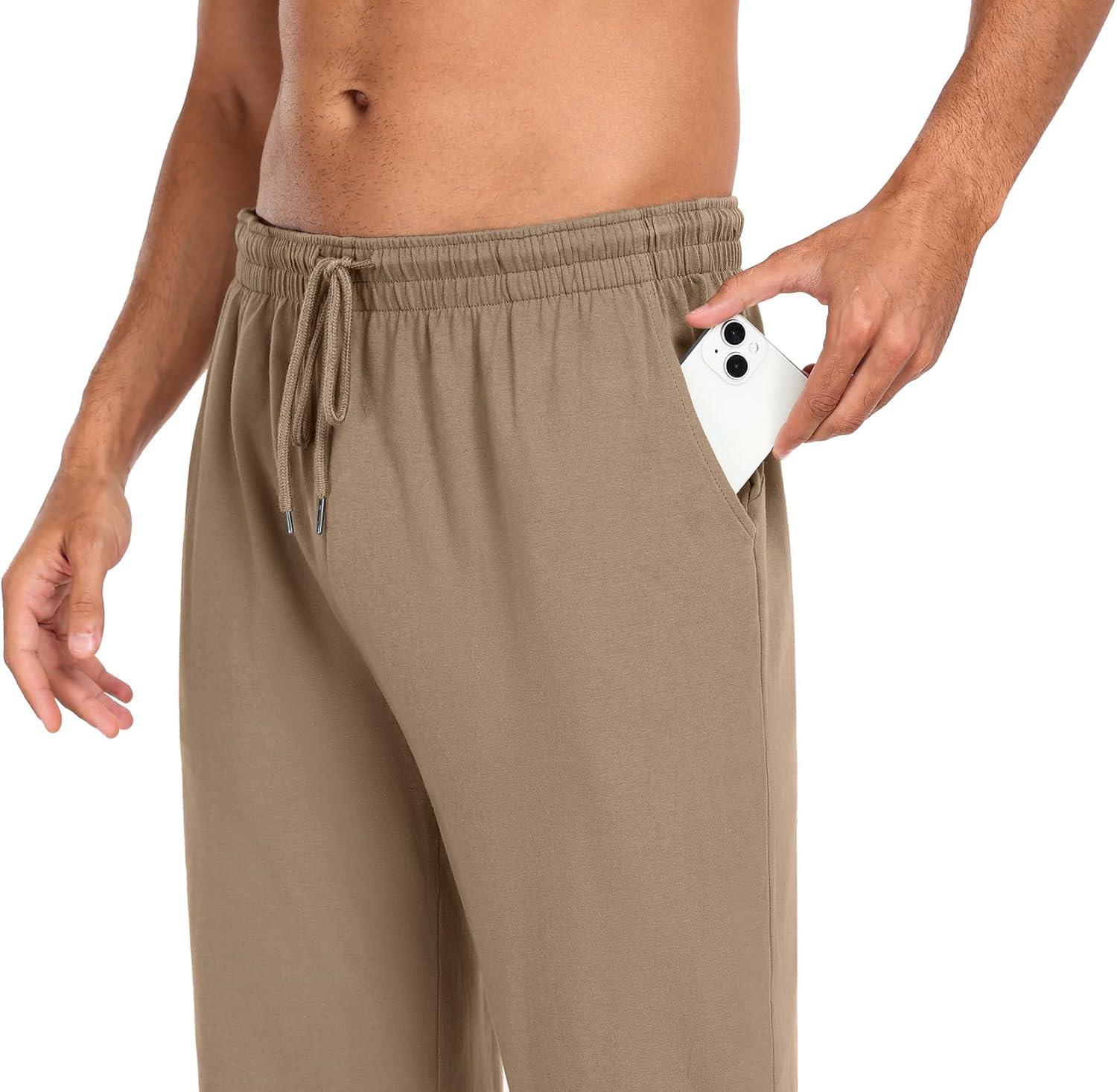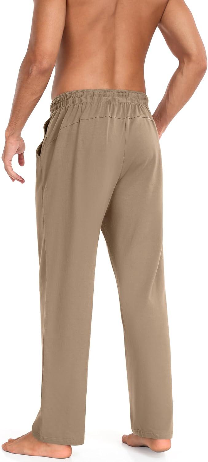 COOFANDY Men Cotton Yoga Pants Casual Sweatpants Jogger Open Bottom Lounge Pants with Pockets(Khaki)