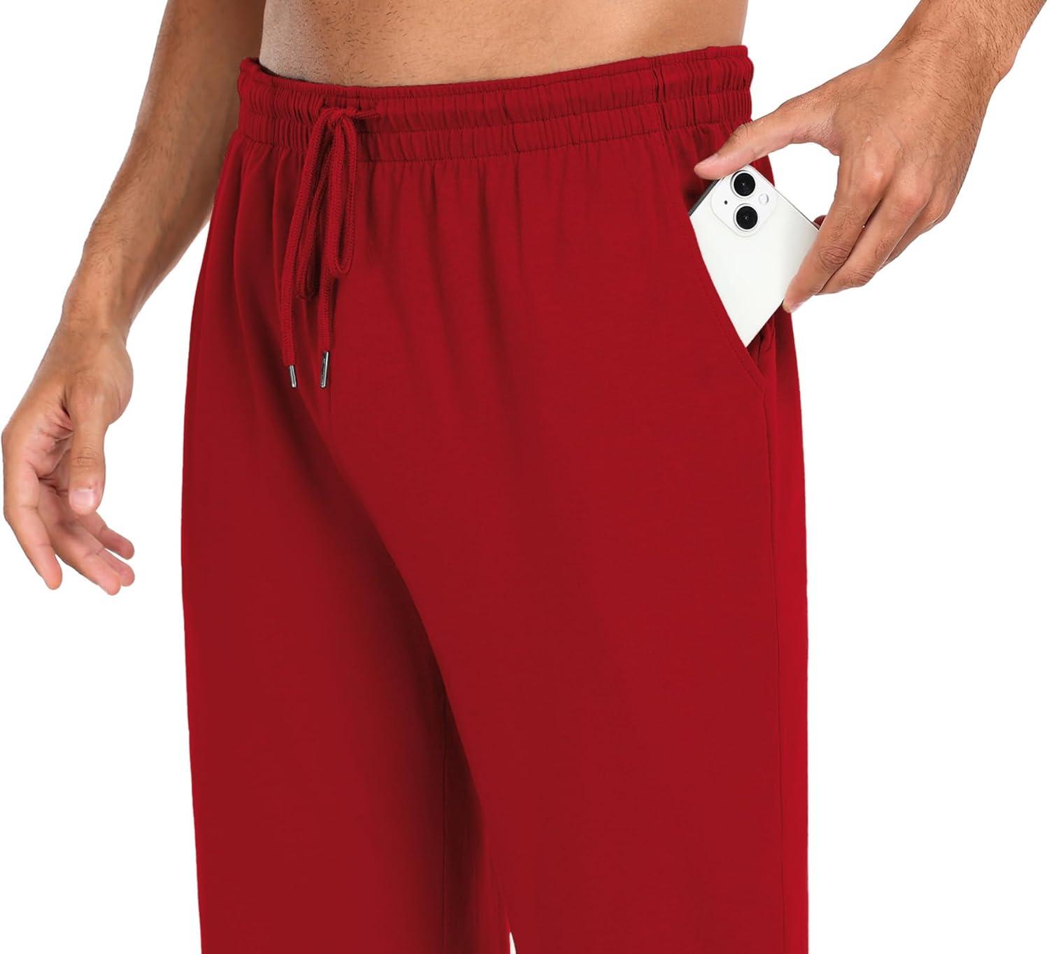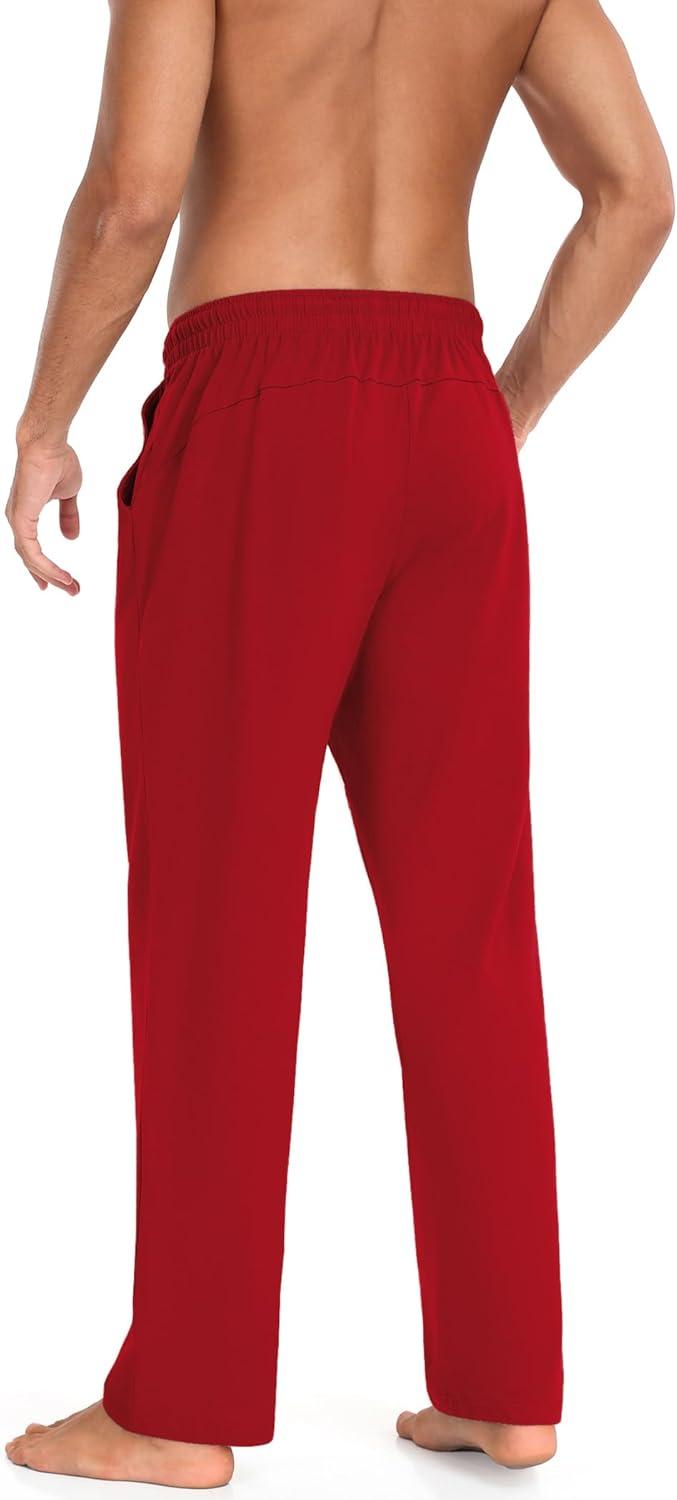 COOFANDY Men Cotton Yoga Pants Casual Sweatpants Jogger Open Bottom Lounge Pants with Pockets(Red)