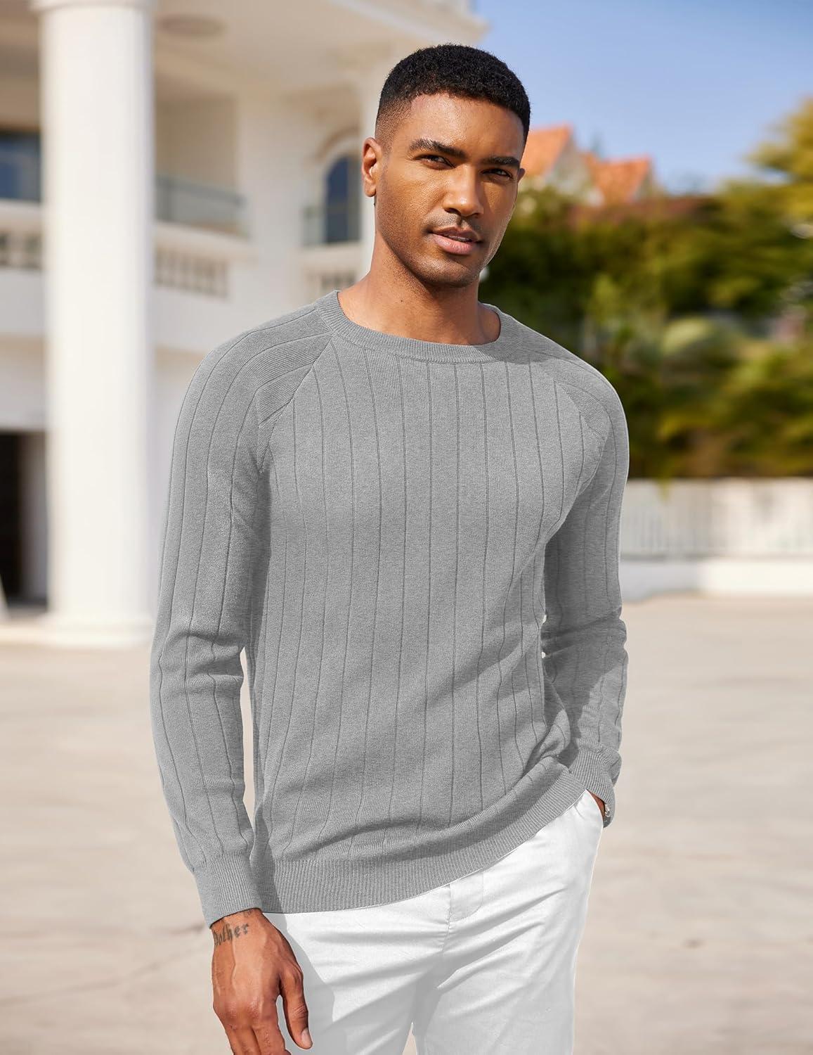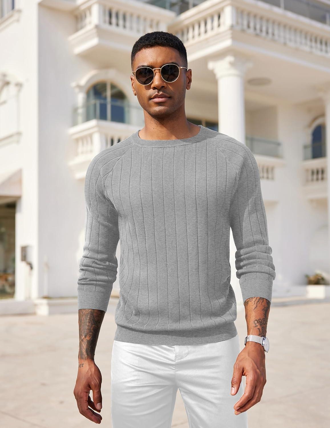COOFANDY Men Dress Sweater Long Sleeve Crew Neck Sweater Slim Fit Business Casual Pullover Sweater(Light Gray)