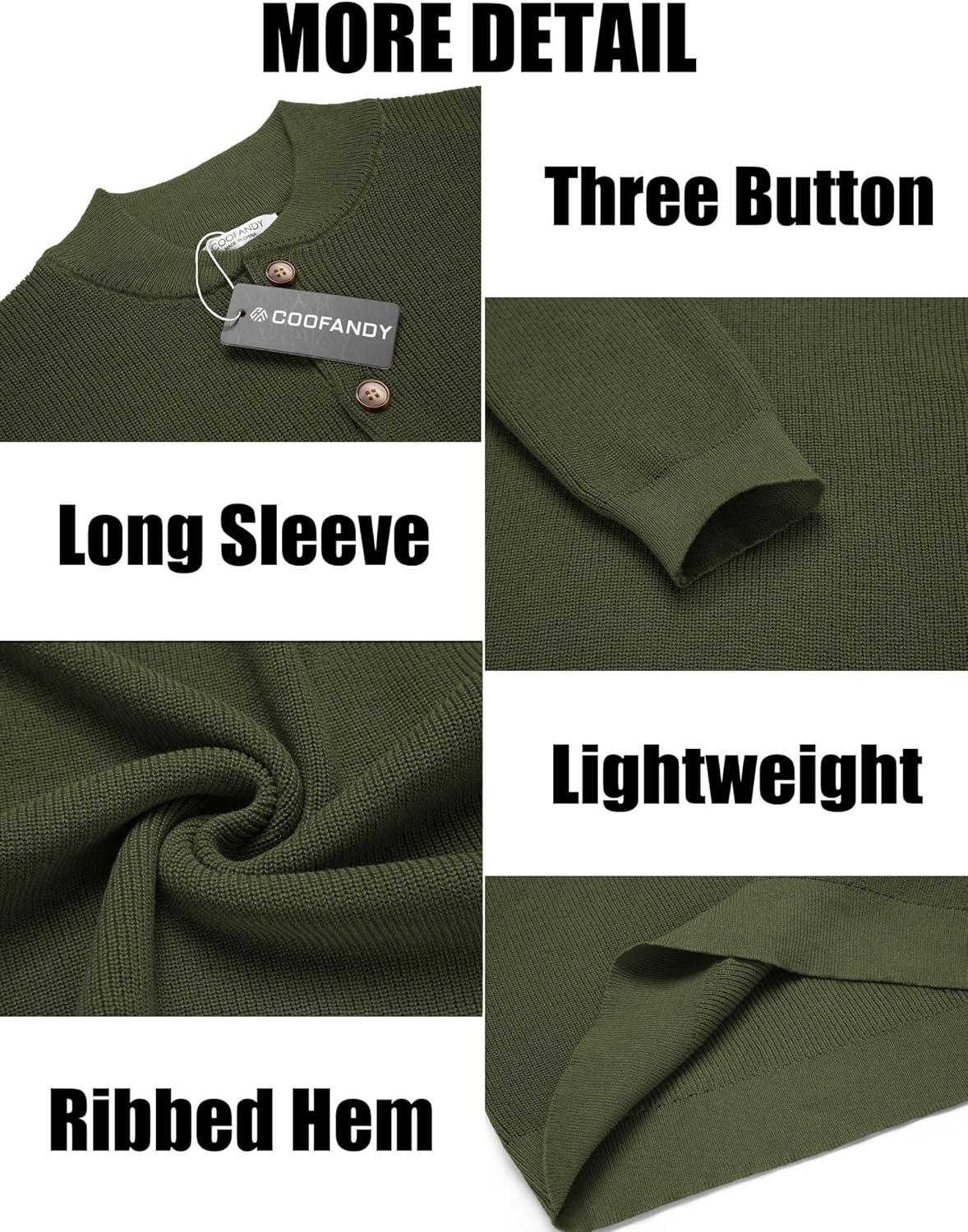 imageCOOFANDY Men Henley Knit Sweater Dress Long Sleeve Button Pullover Sweater Casual Sweater Lightweight Slim Fit TopsArmy GreenBlack