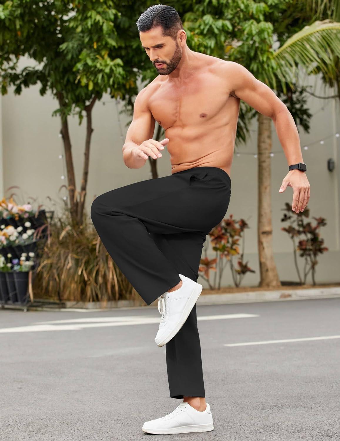 COOFANDY Men Jogger Yoga Sweatpants Casual Athletic Elastic Waist Pants Open Bottom Trouser Jersey Knit Pants with Pockets(Black)