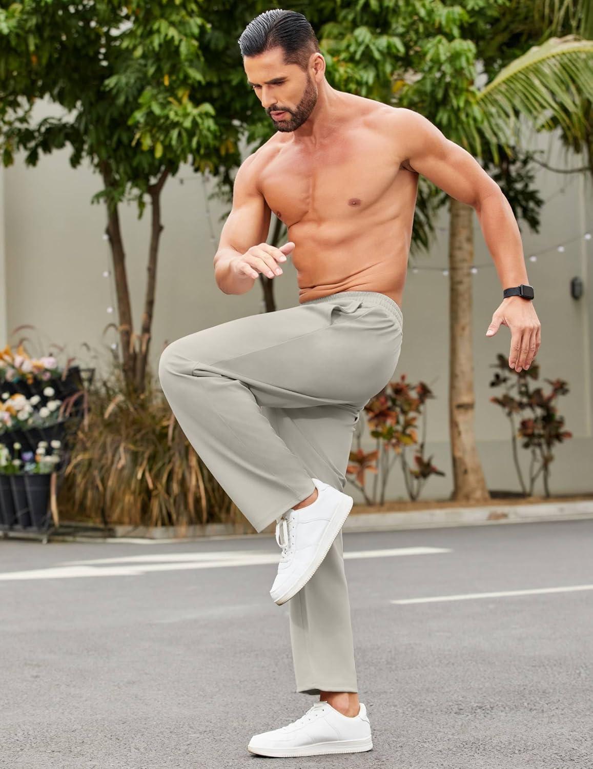 COOFANDY Men Jogger Yoga Sweatpants Casual Athletic Elastic Waist Pants Open Bottom Trouser Jersey Knit Pants with Pockets(Moon Gray)