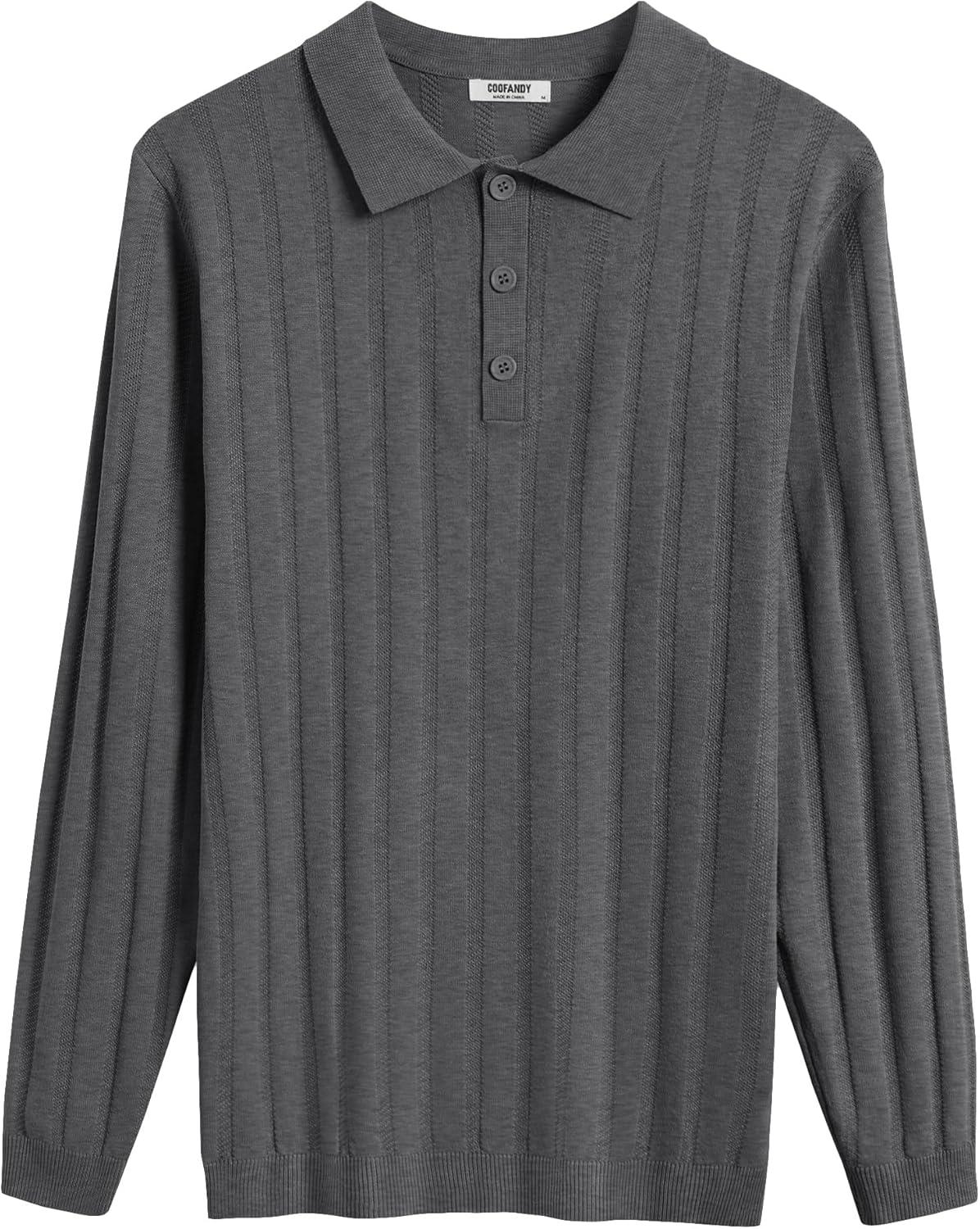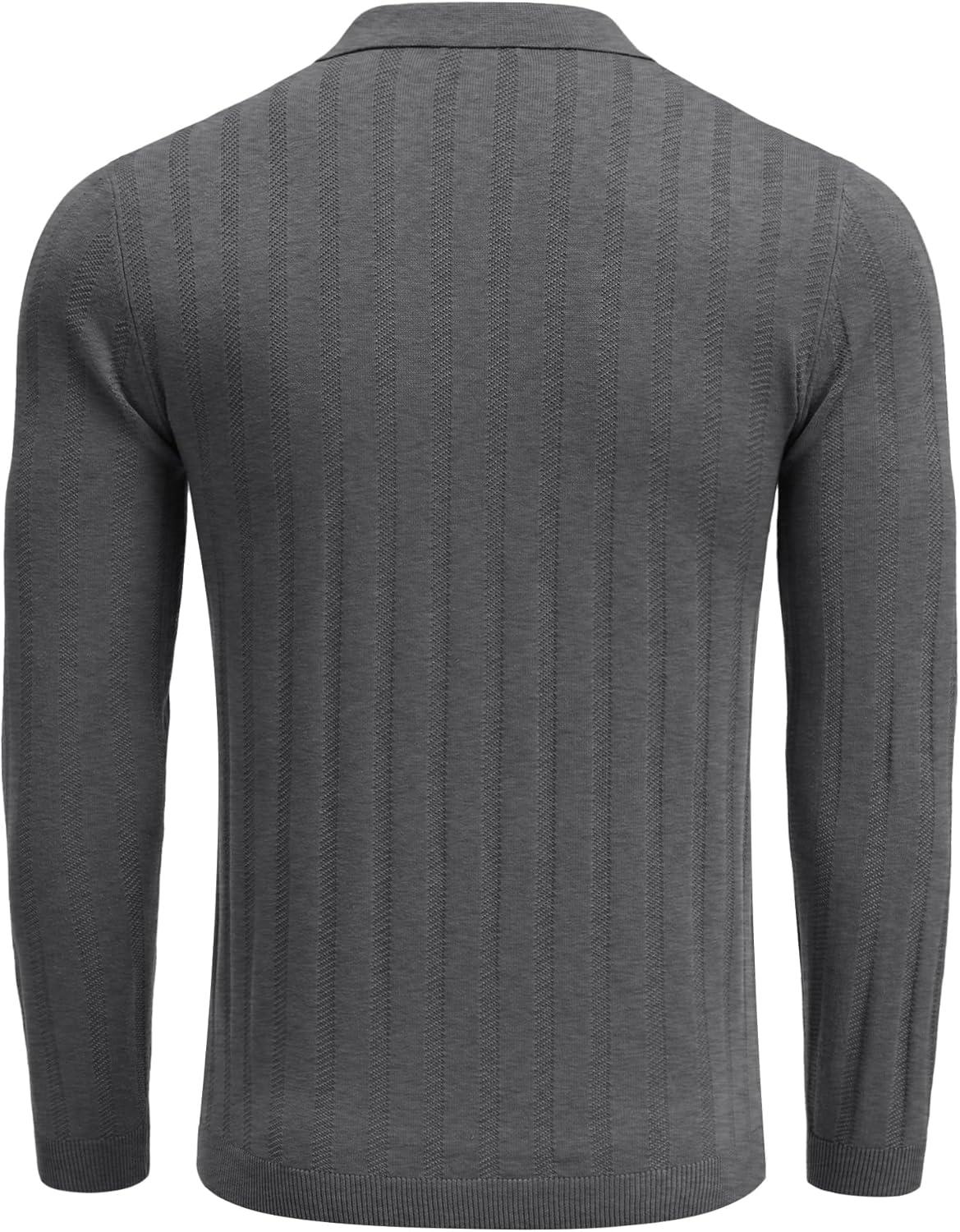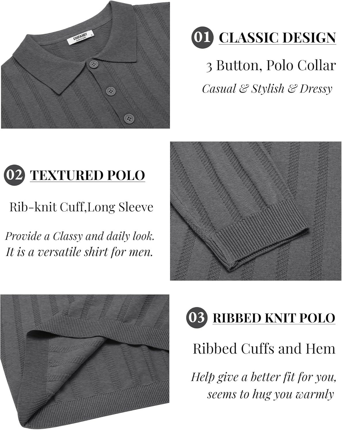 COOFANDY Men Knit Long Sleeve Polo Shirts Casual Dress Collared Sweater Pullover Button Down Golf Polo Shirts(Dark Grey)