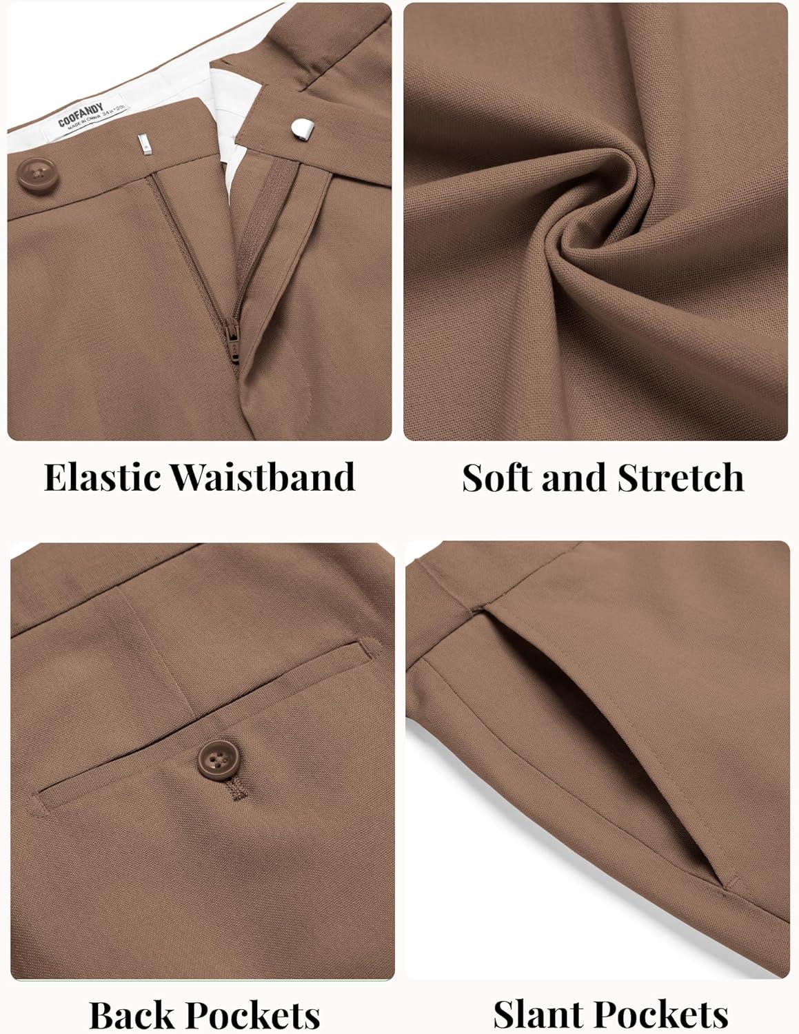 imageCOOFANDY Men Linen Dress Pants Classic Fit Suit Pants Lightweight Wrinkle Free Casual TrousersBrown