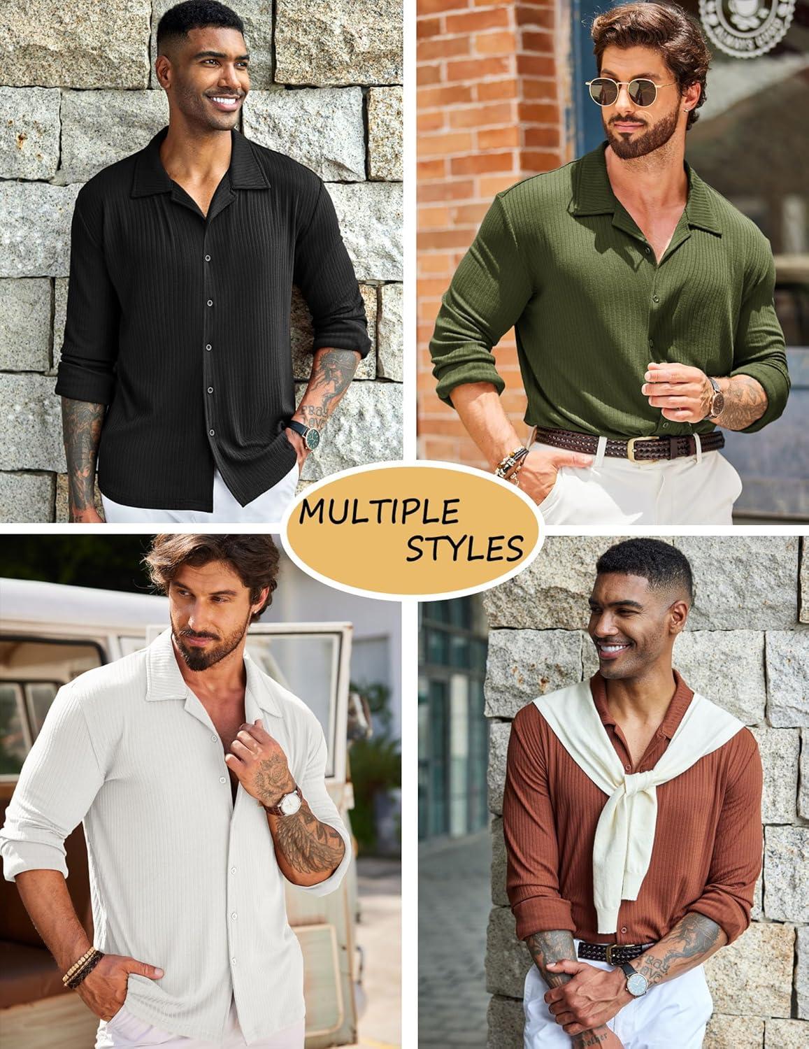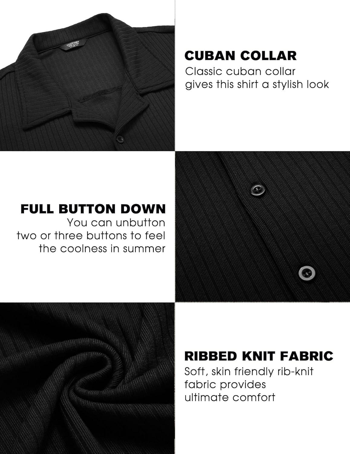 COOFANDY Men Muscle Fit Dress Shirts Knit Button Up Shirts Slim Fit Ribbed Shirts Camp Collar Shirts