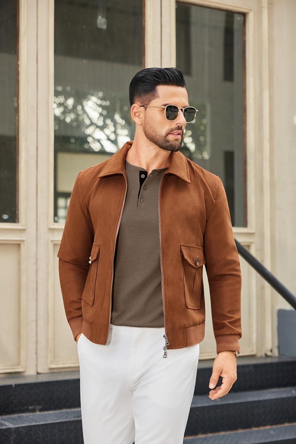 COOFANDY Men Long Sleeve Henley Shirs Casual Basic T Shirts Soild Button Tees with Pockets(Brown)