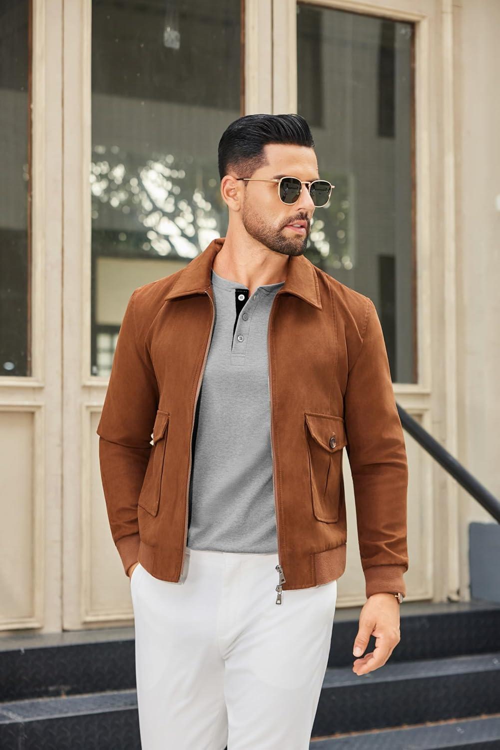 COOFANDY Mens Henley Shirts Long Sleeve Lightweight Buttons T-Shirts Casual Basic Pullover Top(Brown)