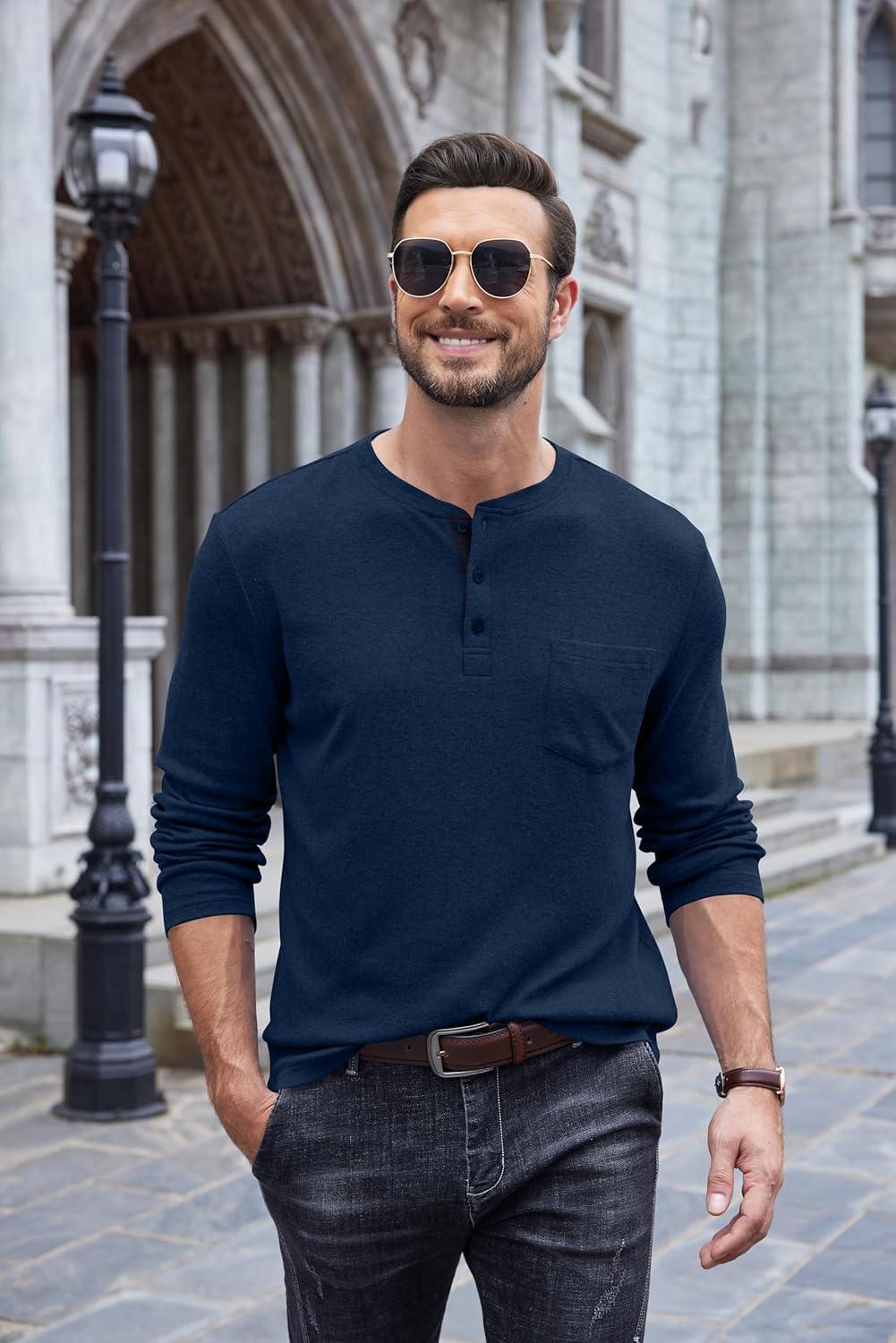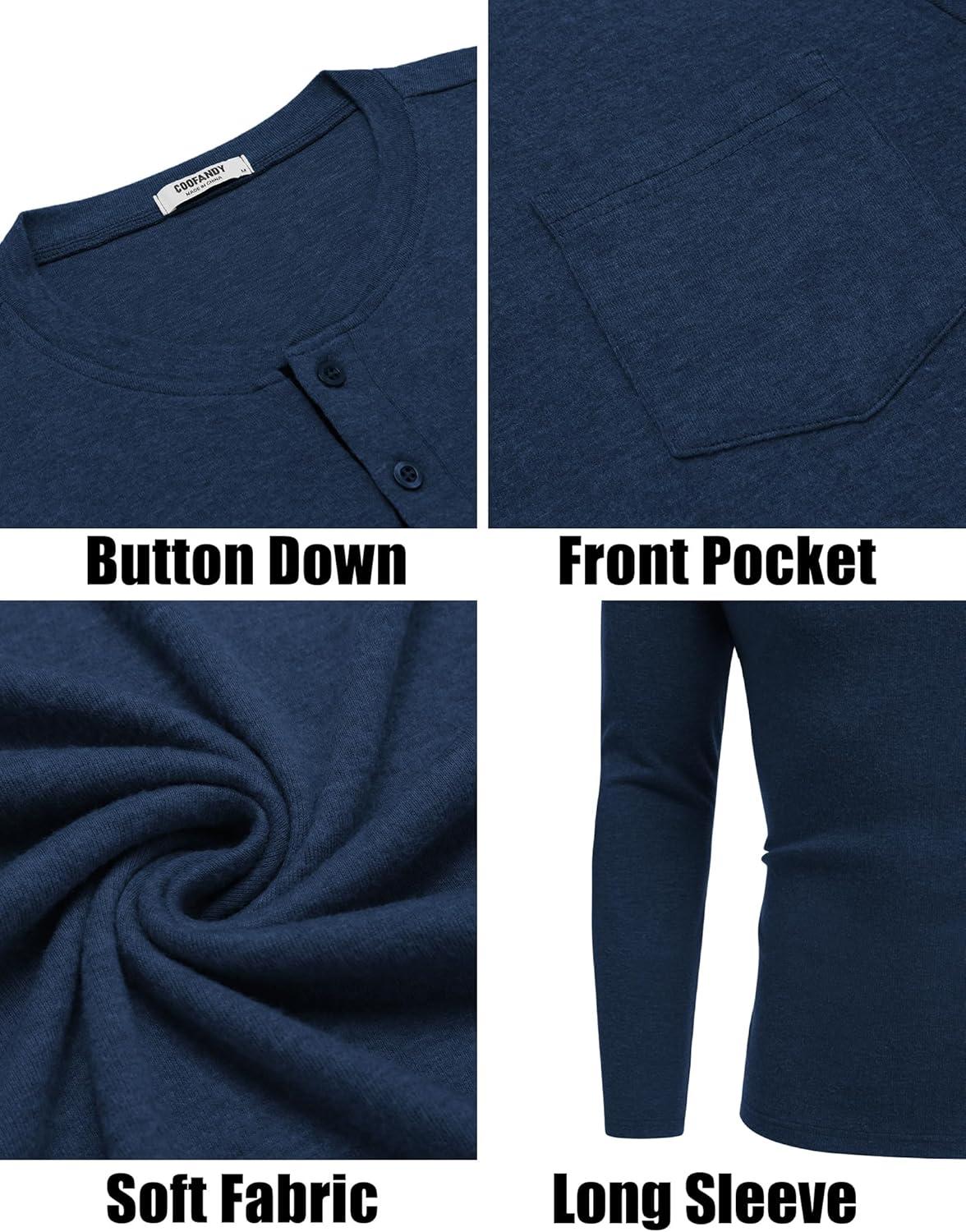 Get up to 70% off on COOFANDY Men Long Sleeve Henley T-Shirs Casual Basic Lightweight Fashion Shirts Soild Tees with Pockets(Navy Blue) styles during our end-of-season clearance event.