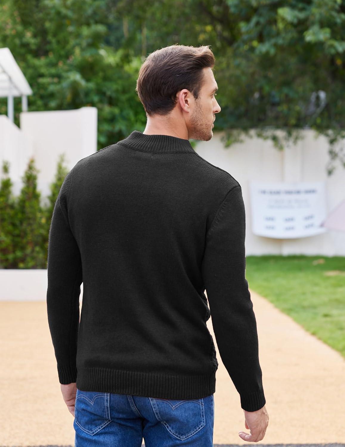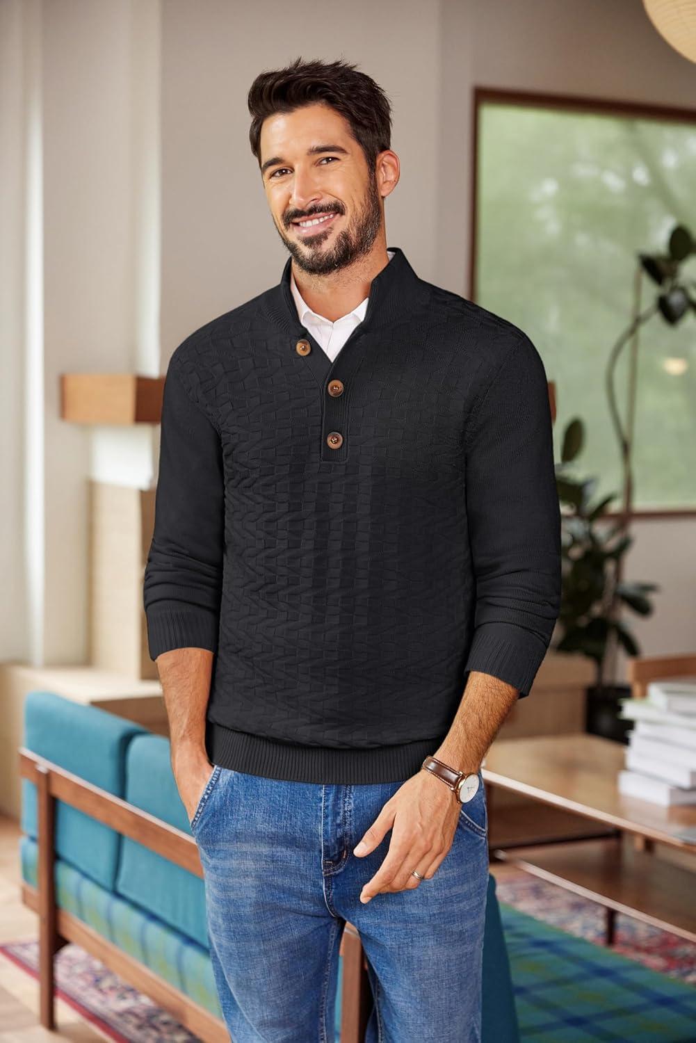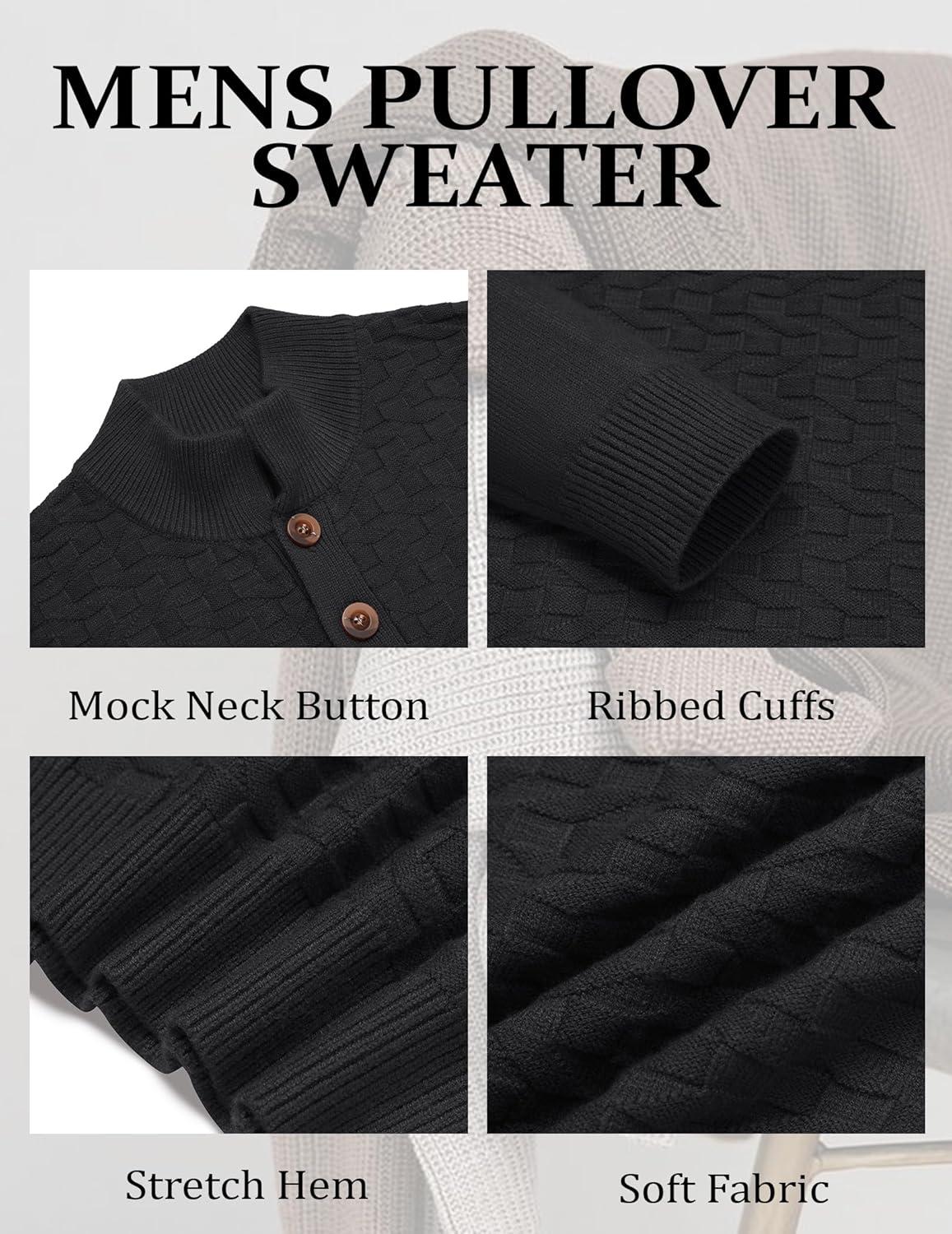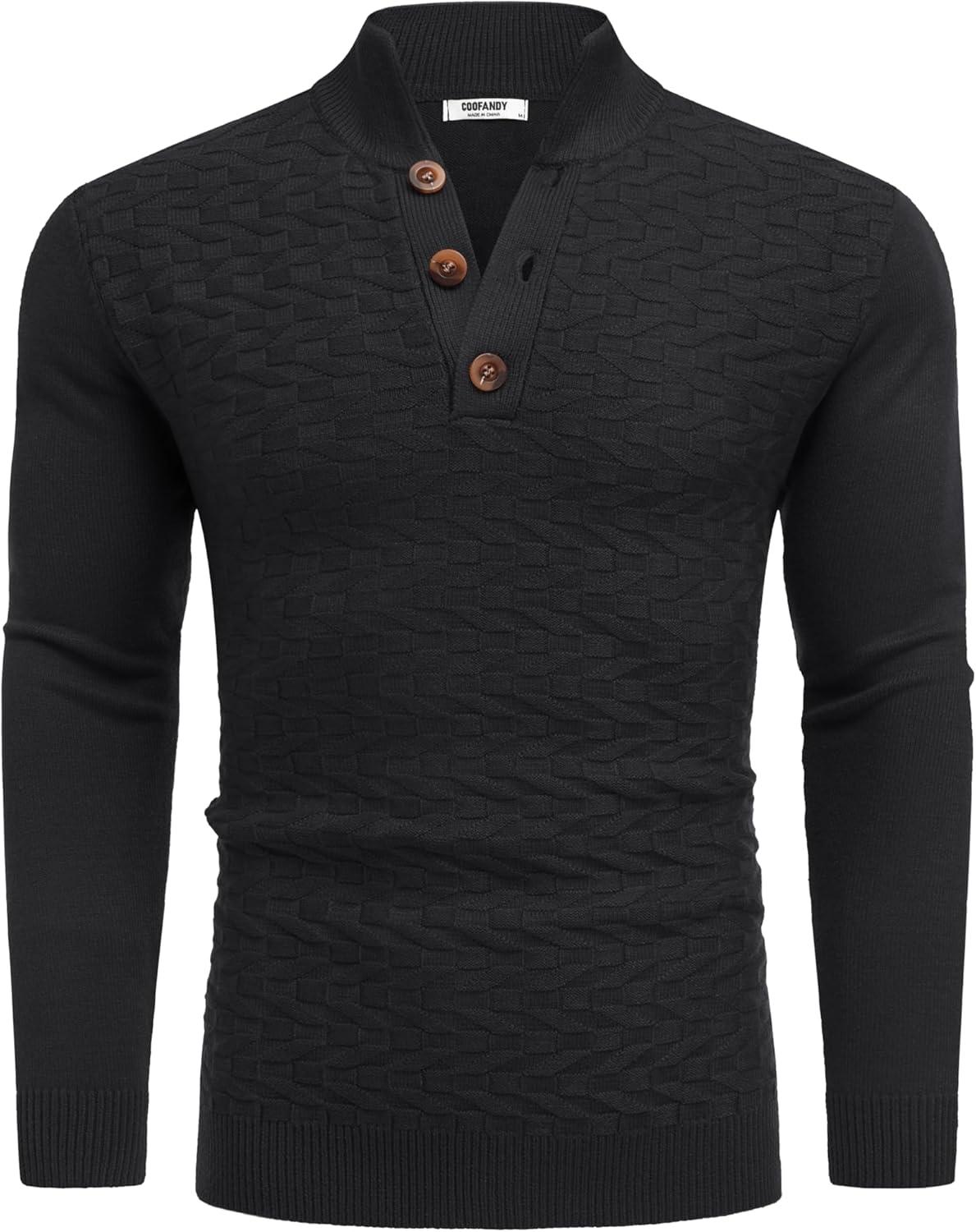 COOFANDY Men Mock Neck Button Sweater Casual Knitted Sweaters Fashion Henley Sweater(Black)