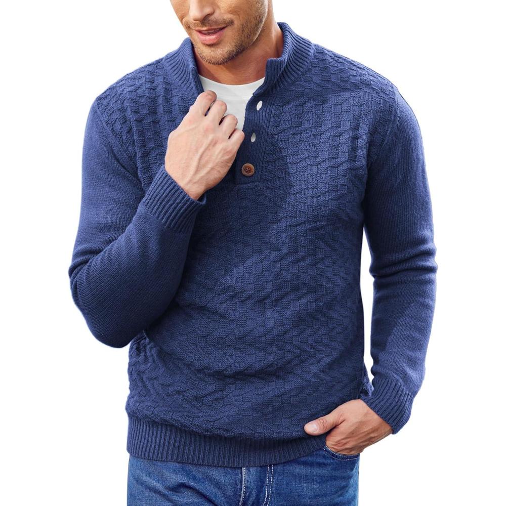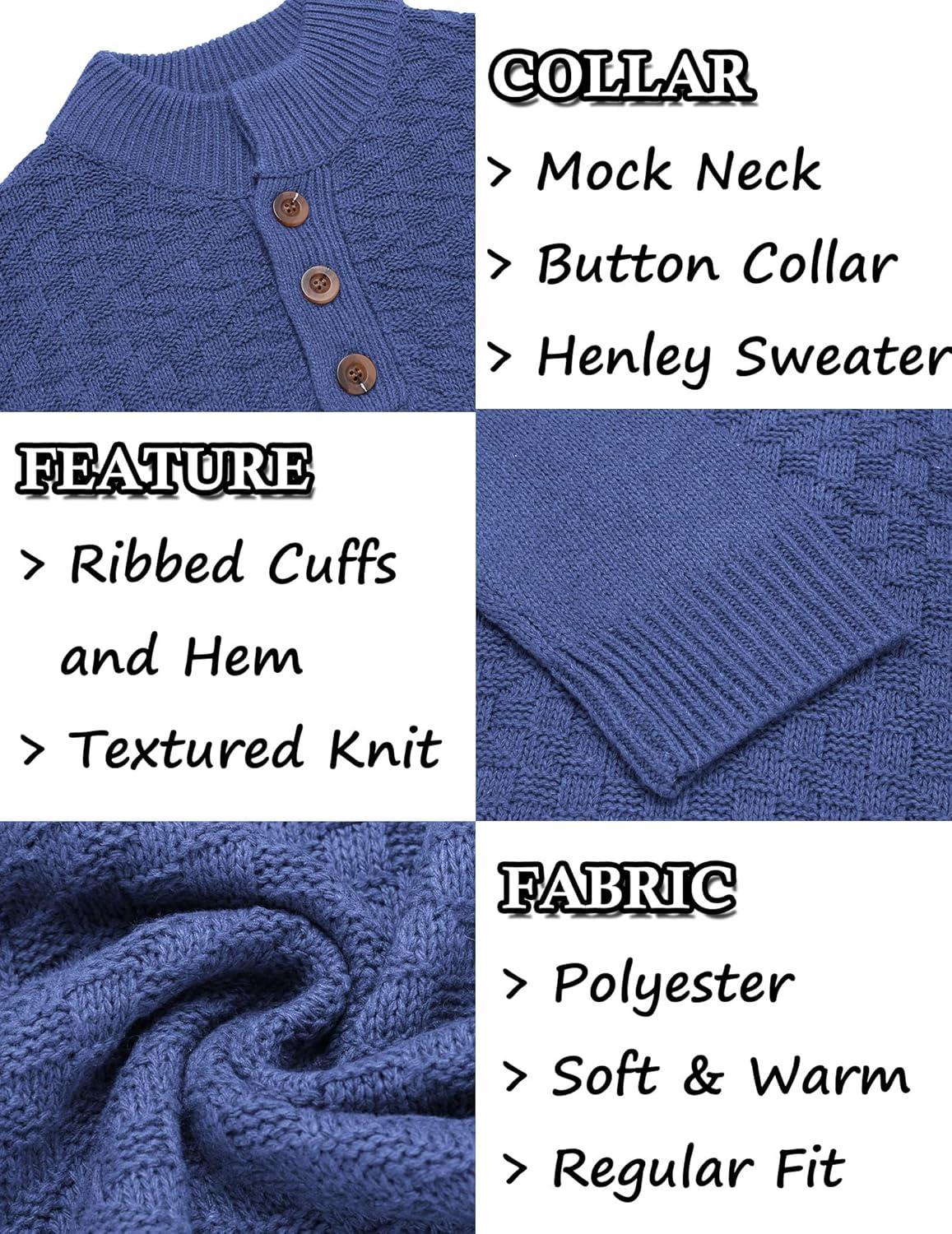 COOFANDY Men Mock Neck Button Sweater Casual Knitted Sweaters Fashion Henley Sweater(Blue)
