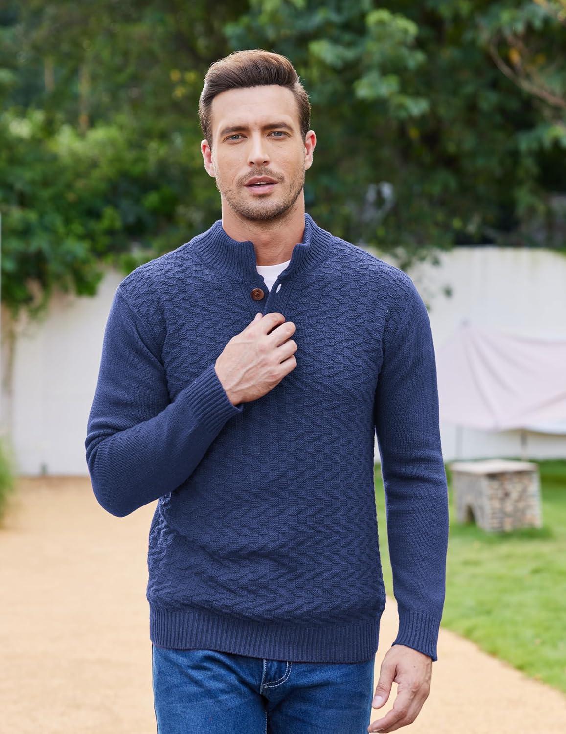 Score big on COOFANDY Men Mock Neck Button Sweater Casual Knitted Sweaters Fashion Henley Sweater(Blue) and accessories during our BOGO sale. Buy one, get one 50% off!