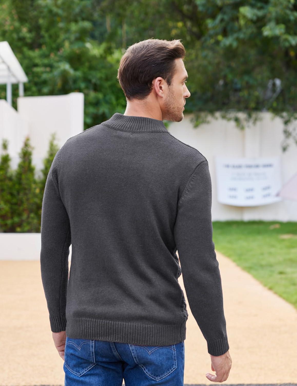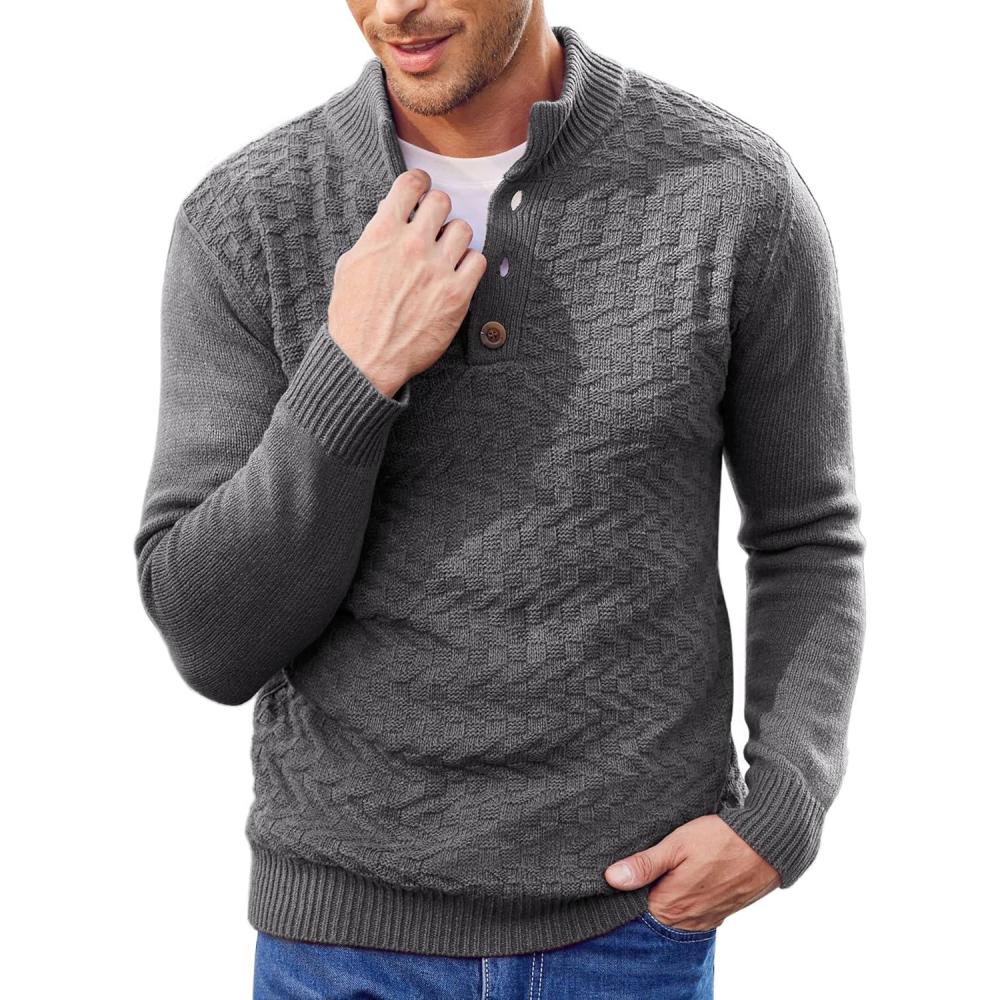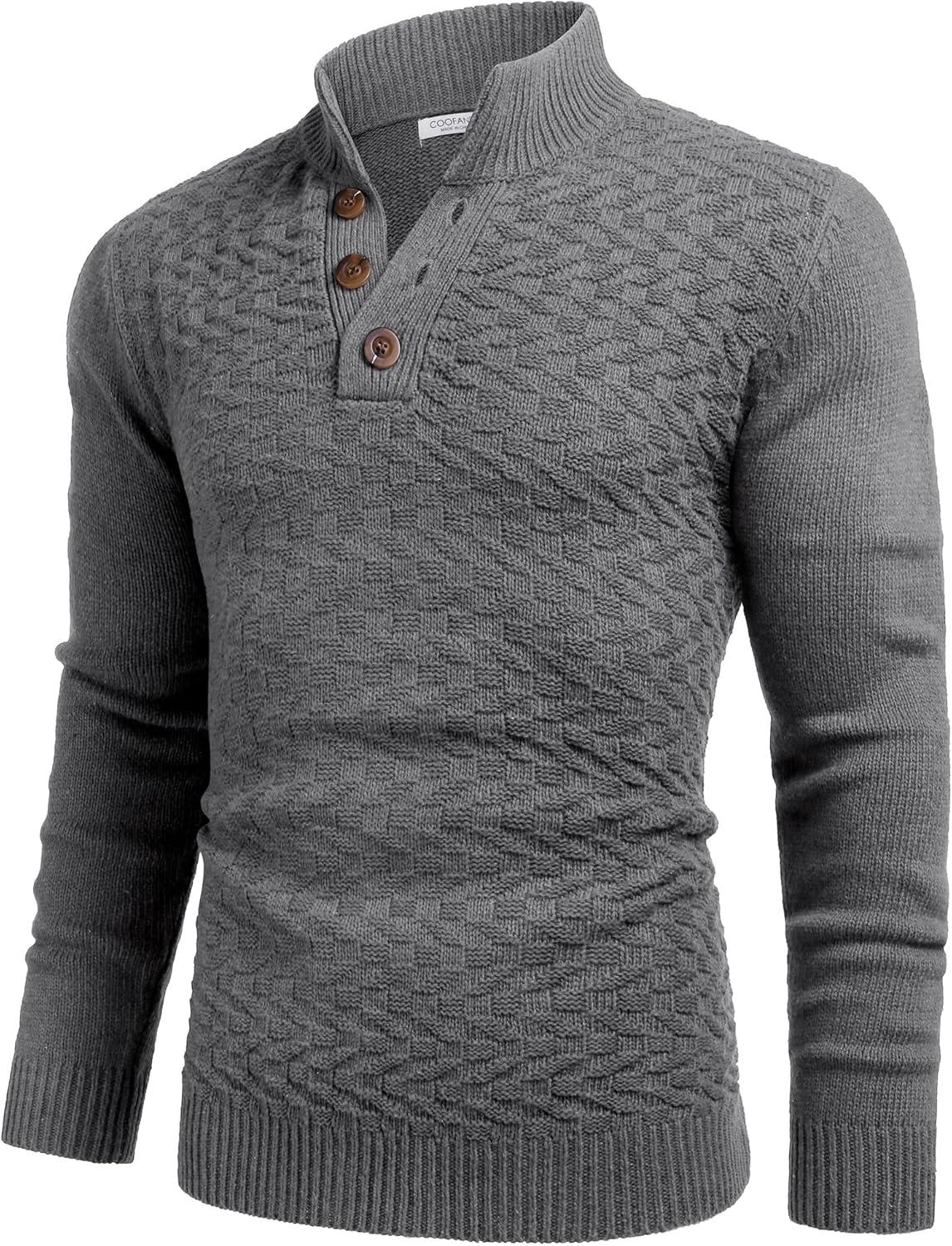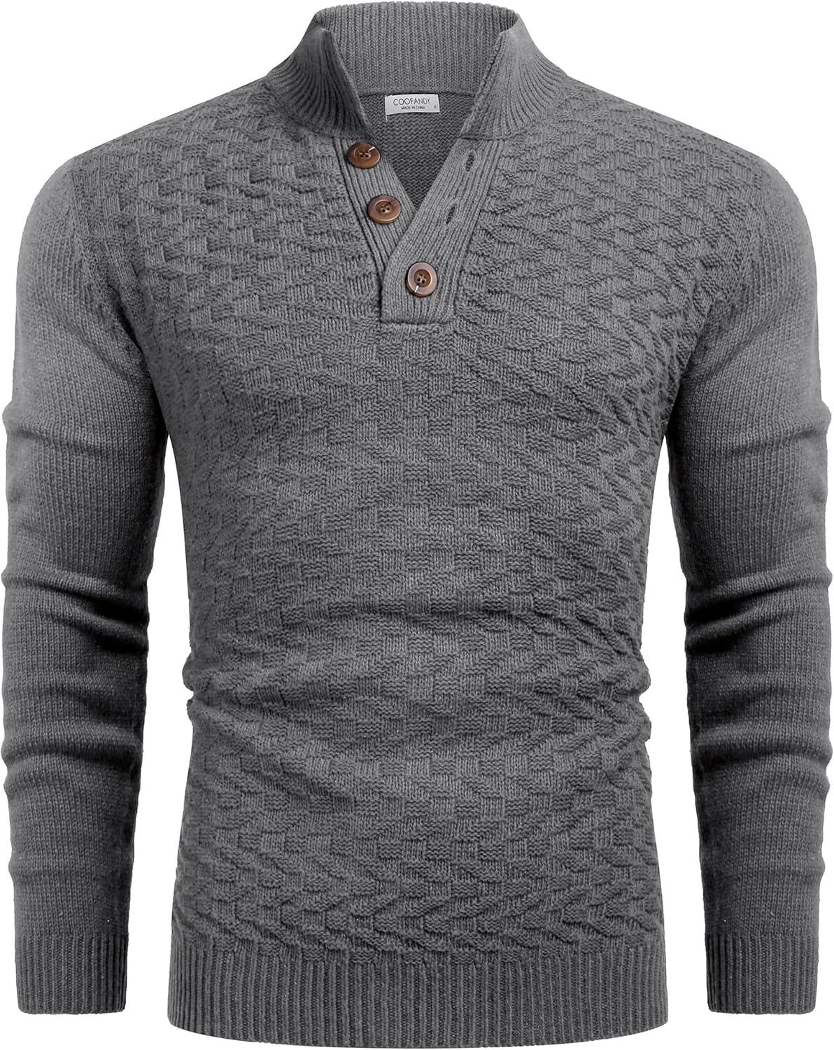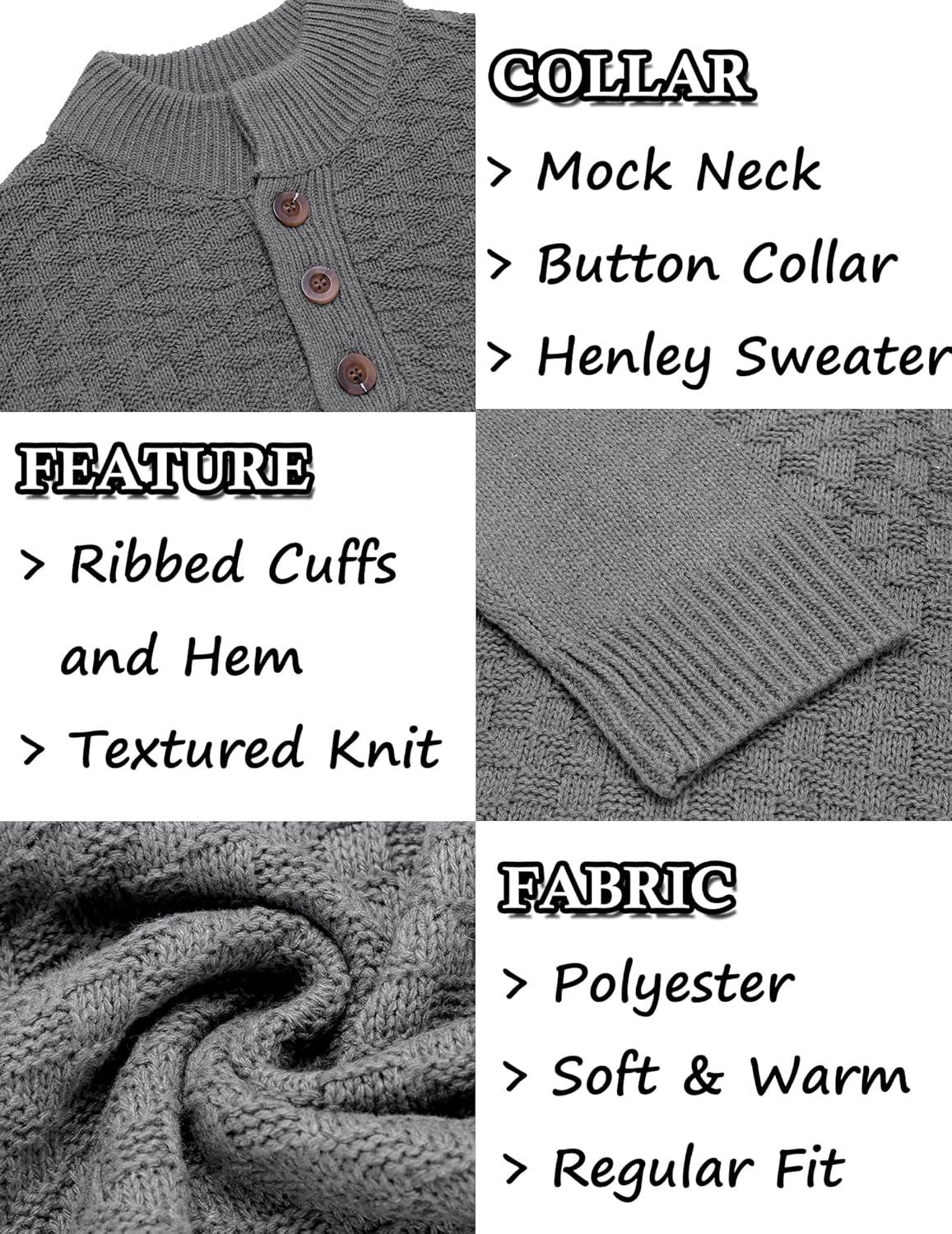 COOFANDY Men Mock Neck Button Sweater Casual Knitted Sweaters Fashion Henley Sweater(Dark Gray)
