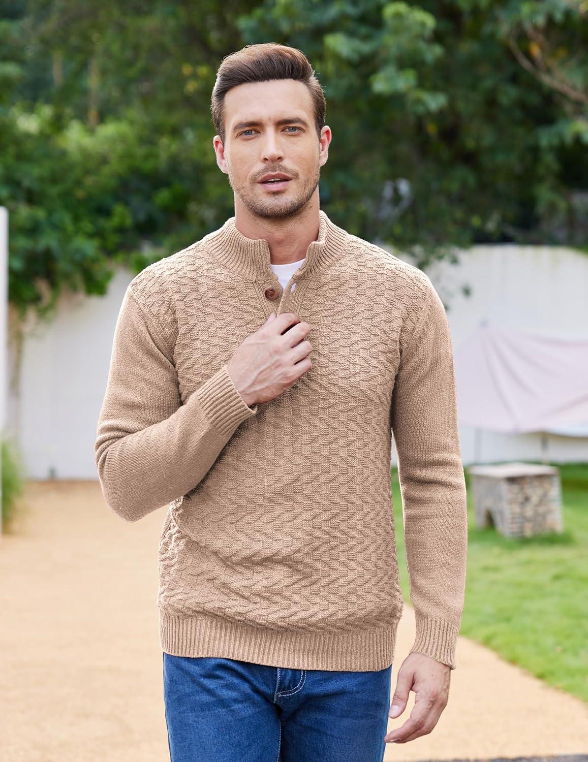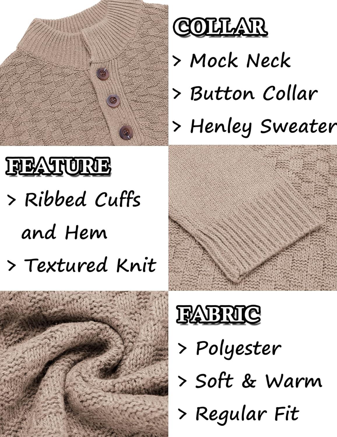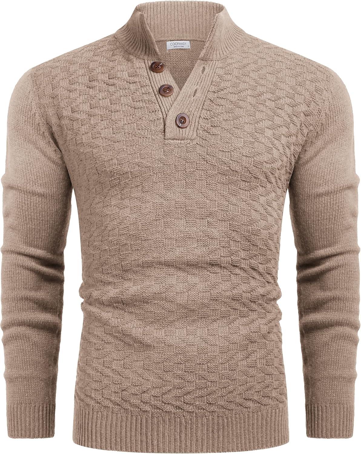 Get your hands on our newest COOFANDY Men Mock Neck Button Sweater Casual Knitted Sweaters Fashion Henley Sweater(Khaki) and enjoy a limited-time discount offer.