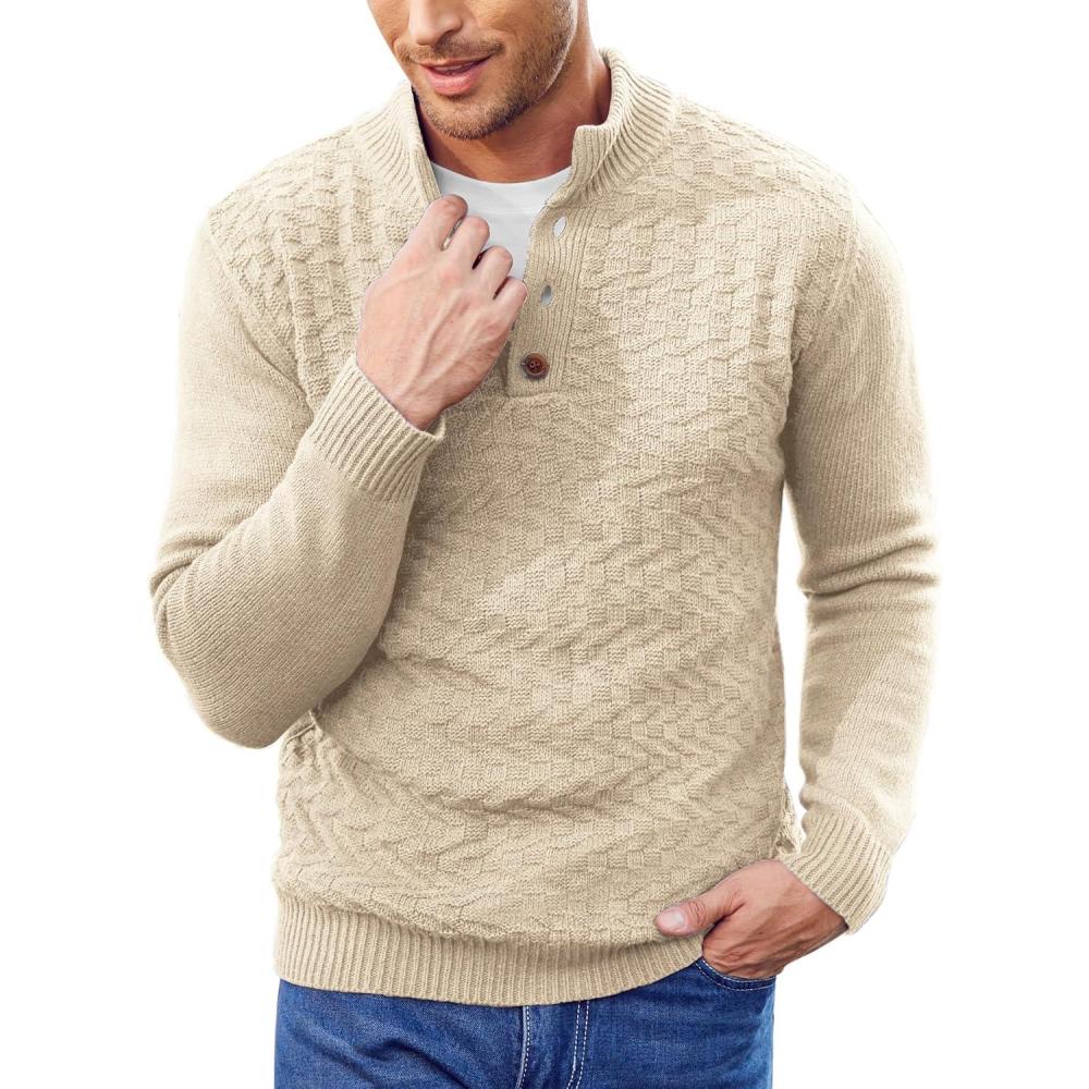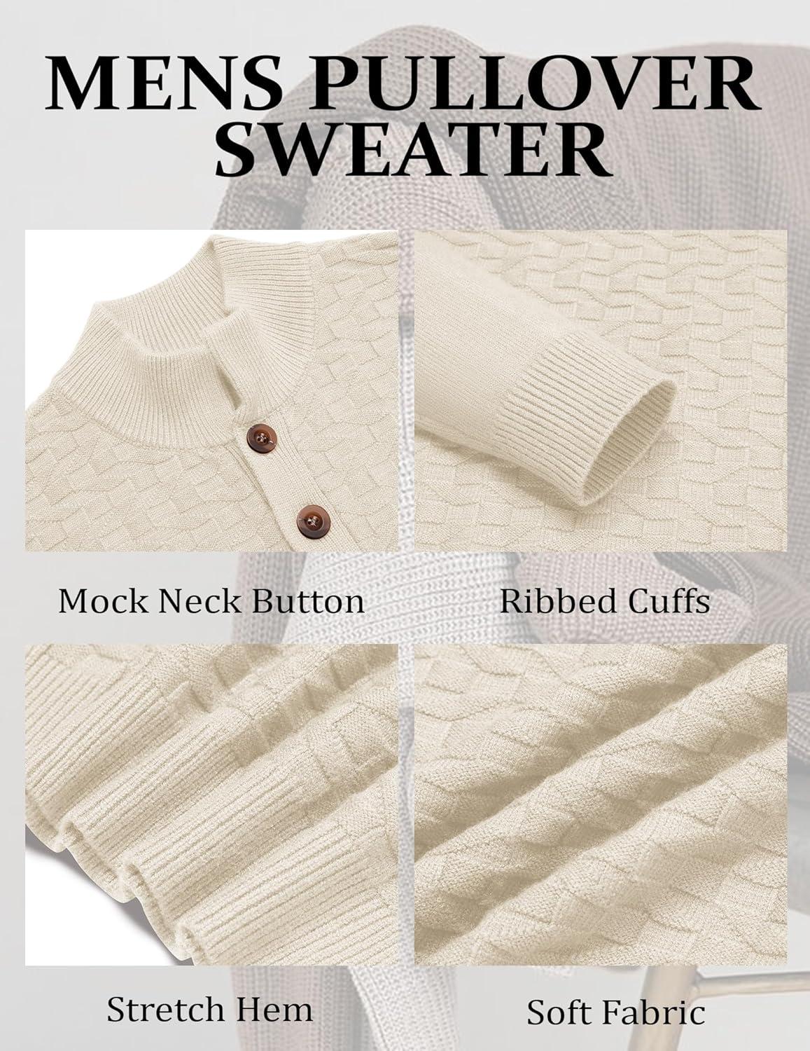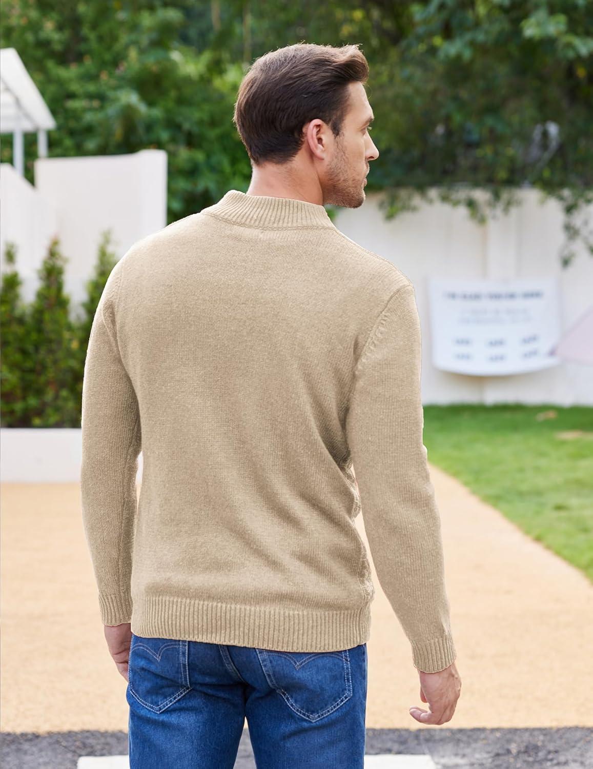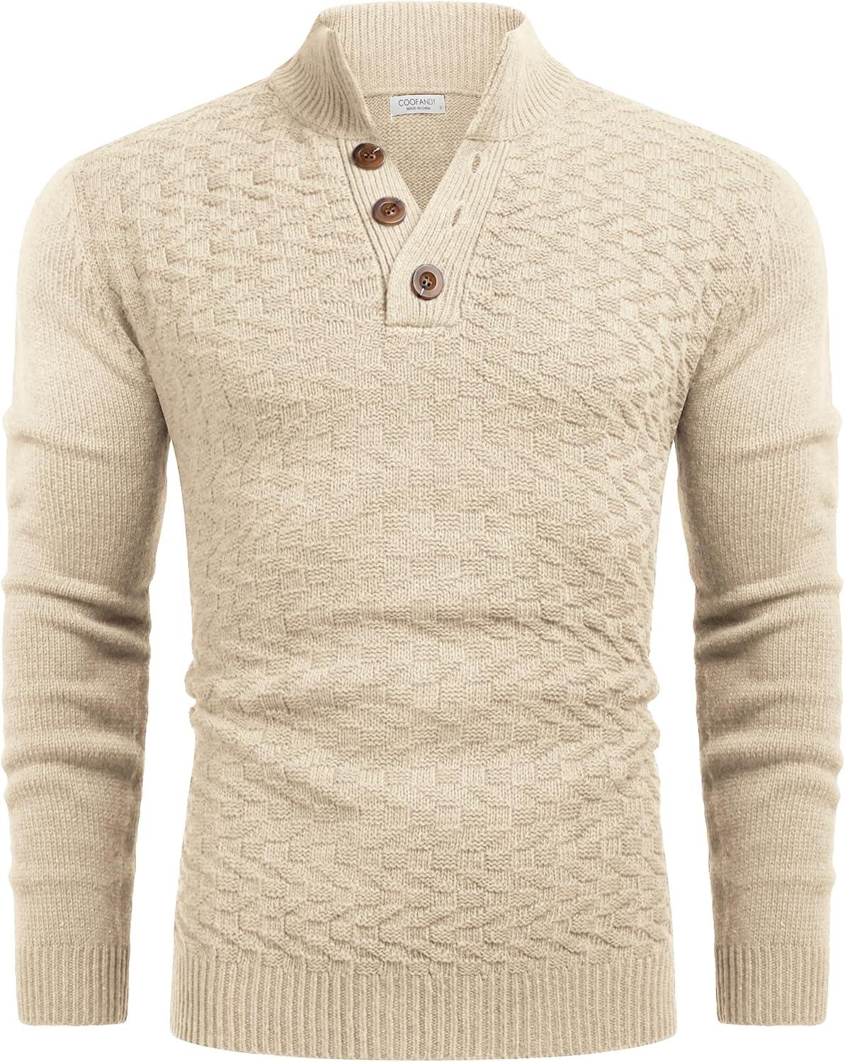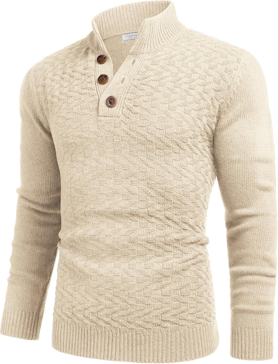 COOFANDY Men Mock Neck Button Sweater Casual Knitted Sweaters Fashion Henley Sweater(Light Khaki)