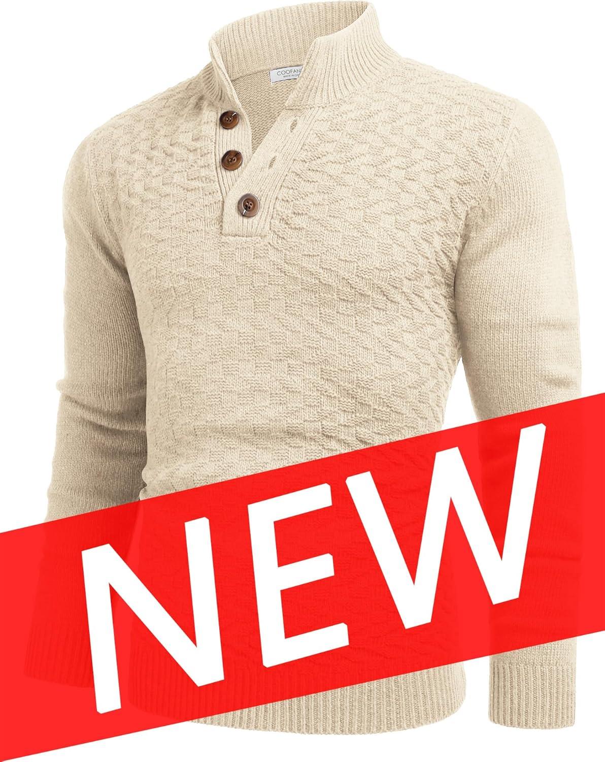 COOFANDY Men Mock Neck Button Sweater Casual Knitted Sweaters Fashion Henley Sweater(Deep Blue)