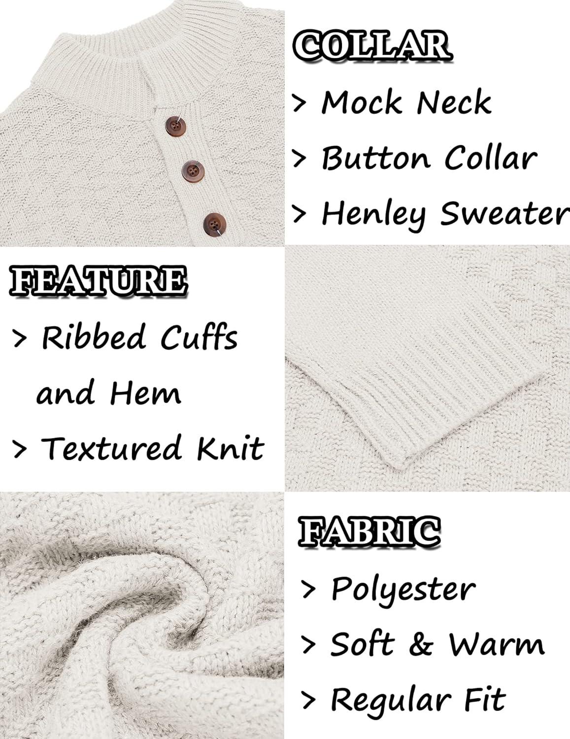Be the first to review “COOFANDY Men Mock Neck Button Sweater Casual Knitted Sweaters Fashion Henley Sweater(White)”