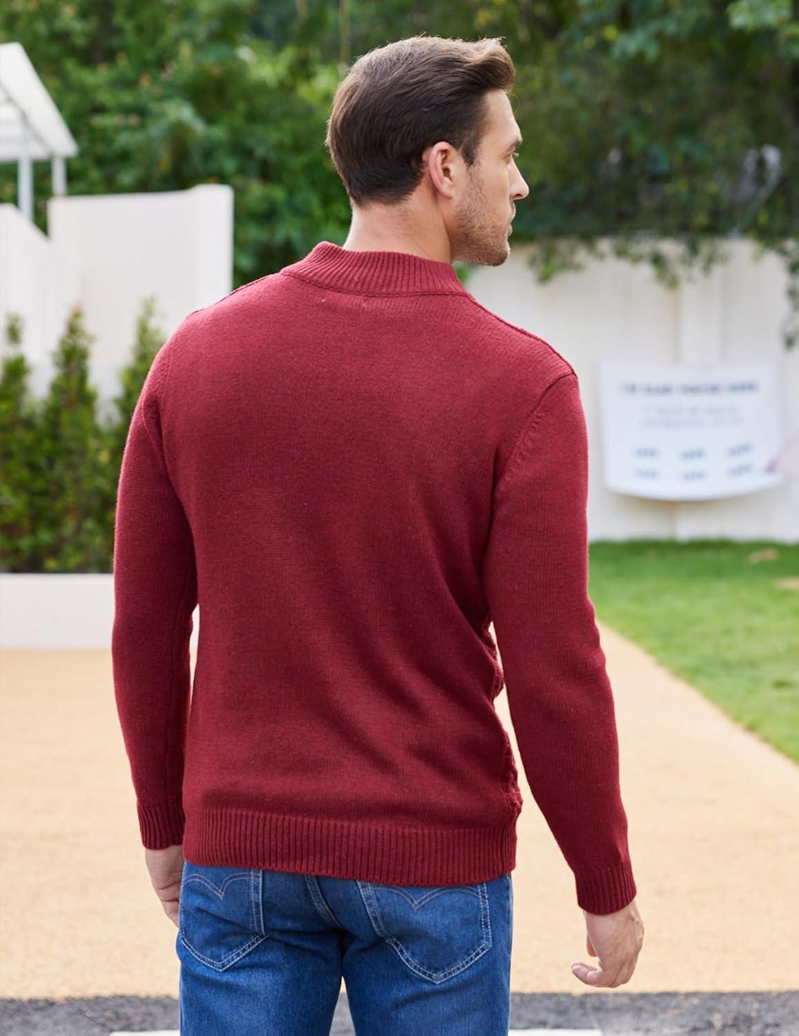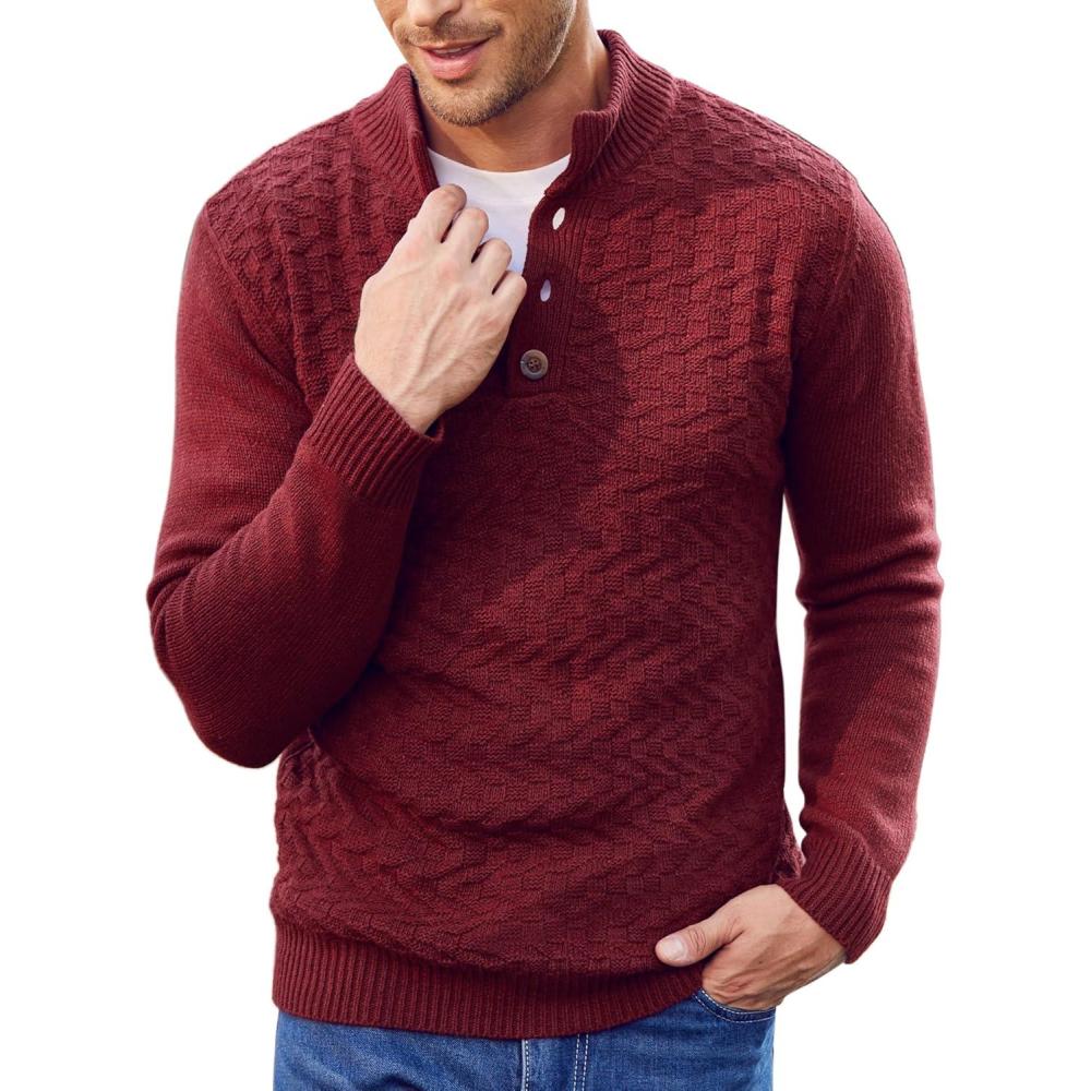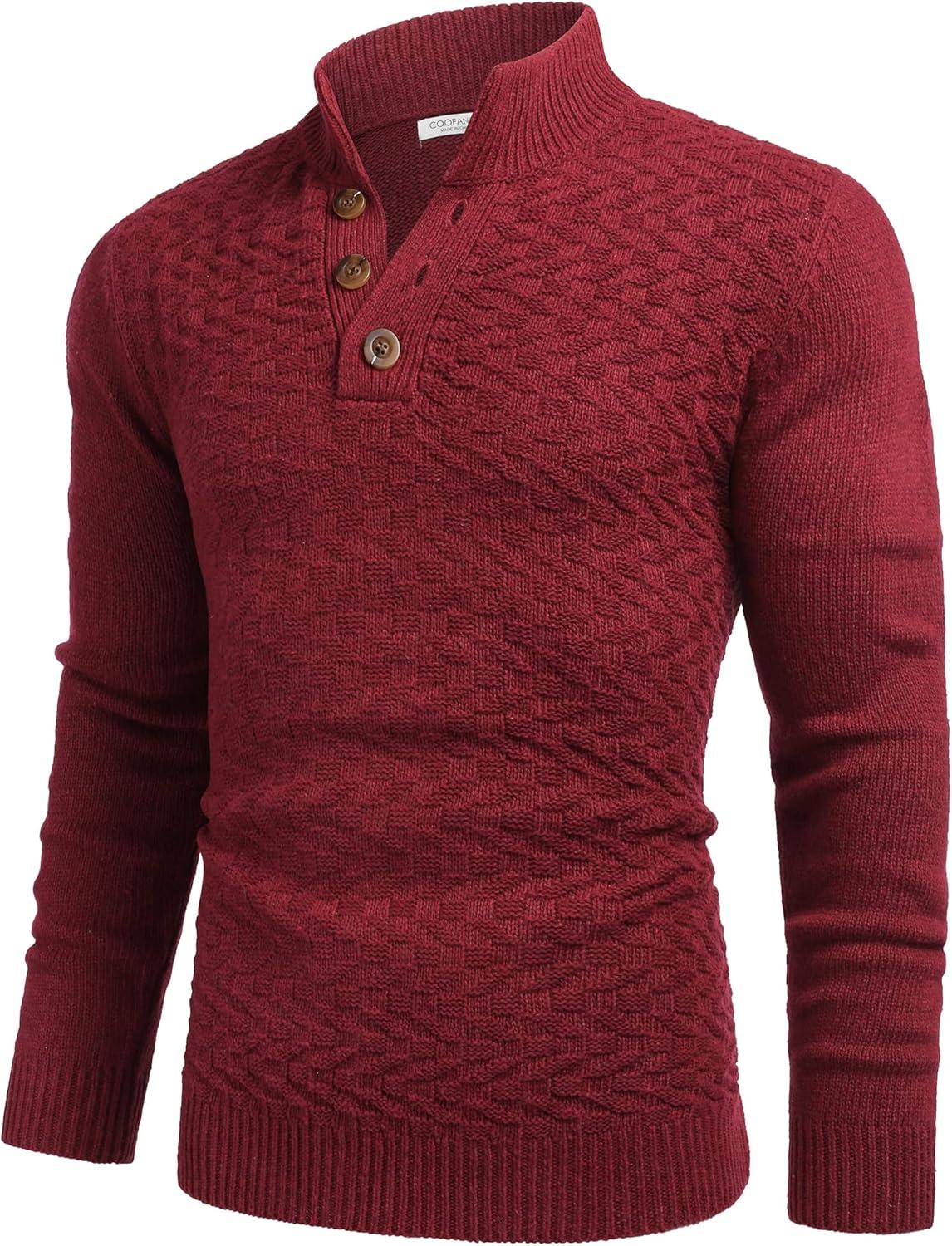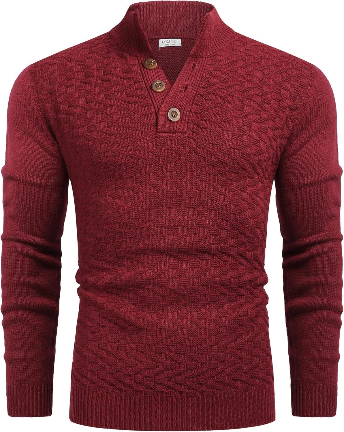 COOFANDY Men Mock Neck Button Sweater Casual Knitted Sweaters Fashion Henley Sweater(Wine Red)
