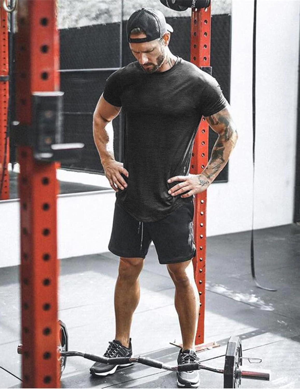 imageCOOFANDY Men Muscle Workout T Shirt Gym Bodybuilding Active Short Sleeve Tee Top BlackTwo Pack BlackArmy Green