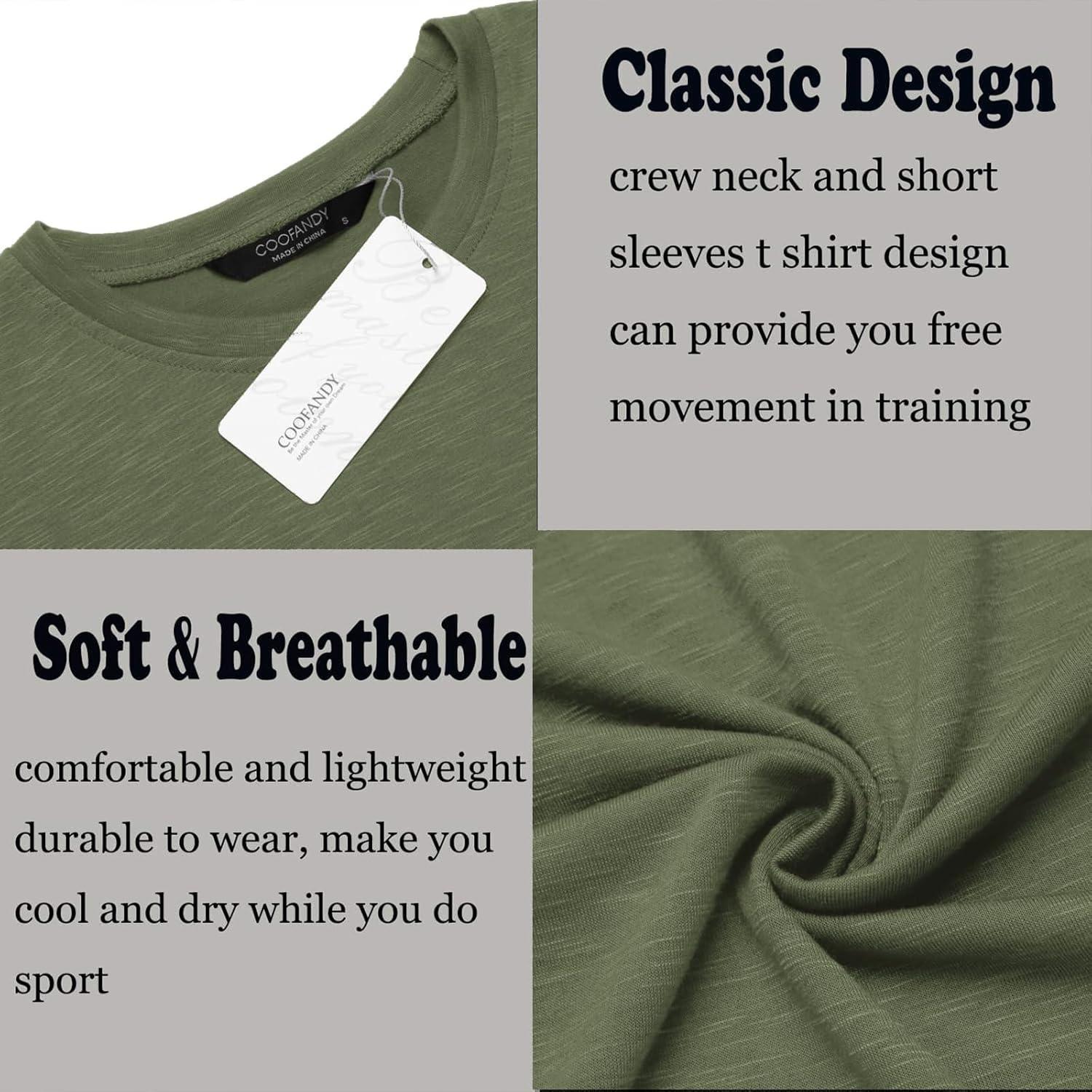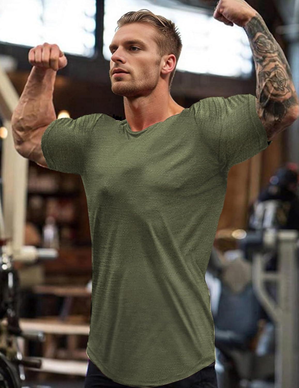 COOFANDY Men Muscle Workout T Shirt Gym Bodybuilding Active Short Sleeve Tee Top Black(Two Pack- Black/Army Green)