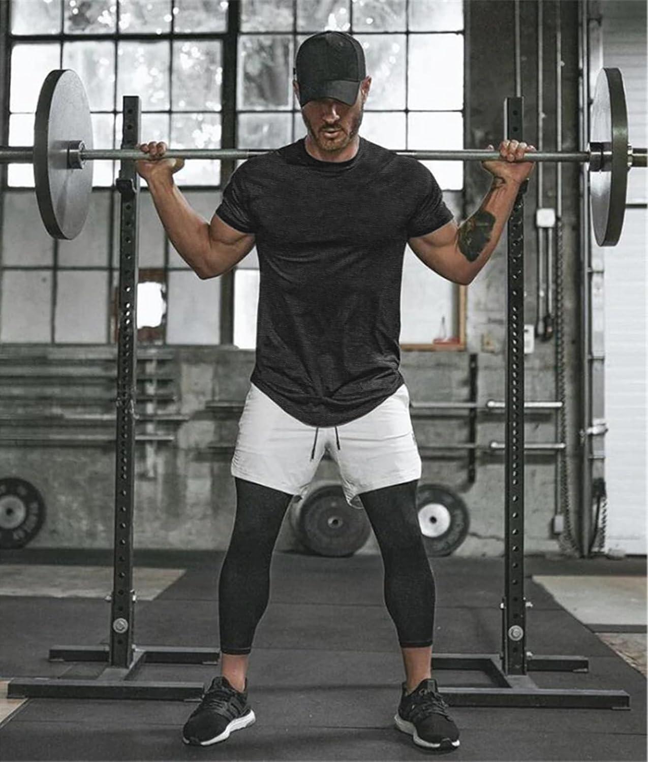 COOFANDY Men Muscle Workout T Shirt Gym Bodybuilding Active Short Sleeve Tee Top Black(Two Pack- Black/Khaki)