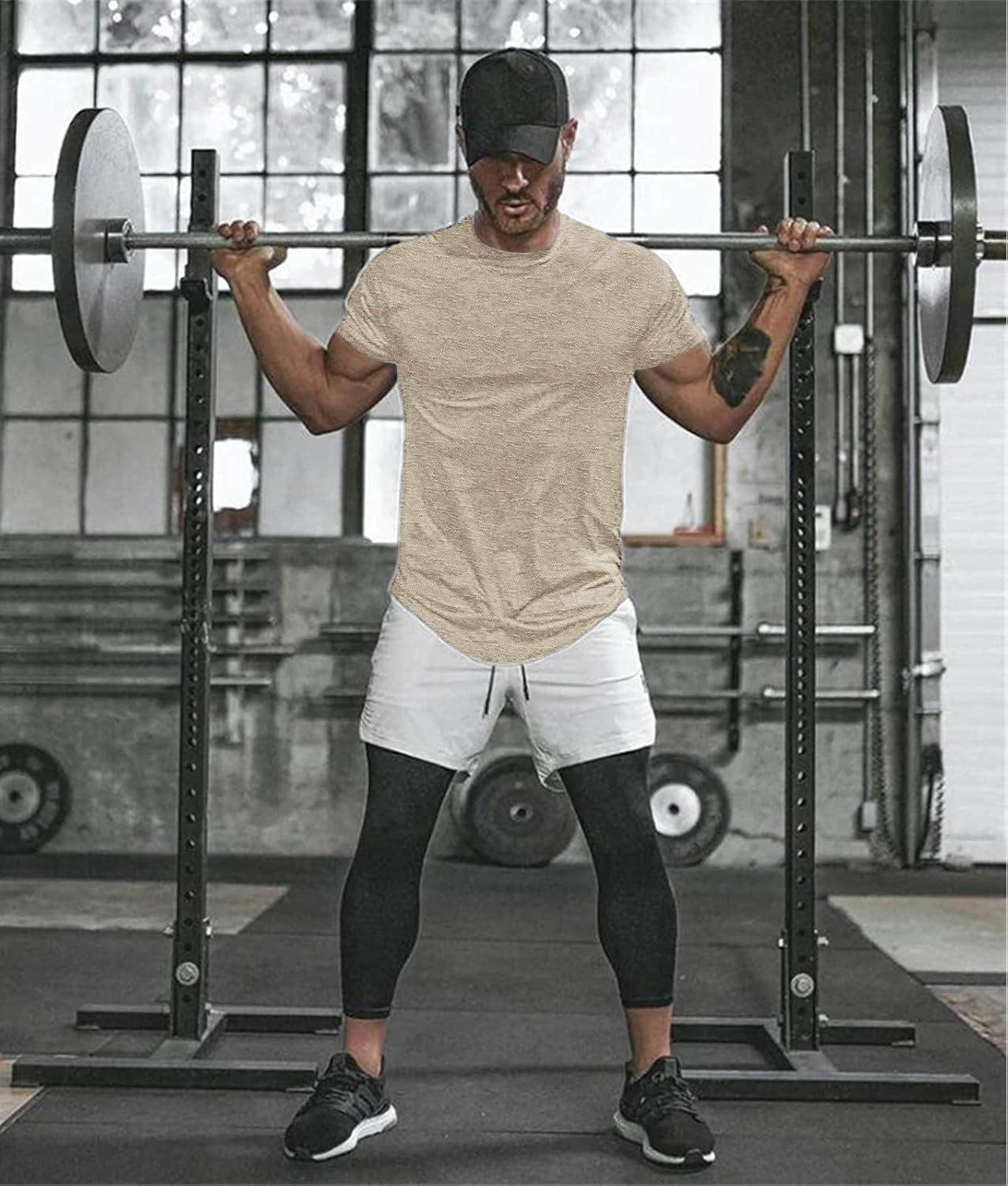 COOFANDY Men Muscle Workout T Shirt Gym Bodybuilding Active Short Sleeve Tee Top Black(Two Pack- Black/Khaki)