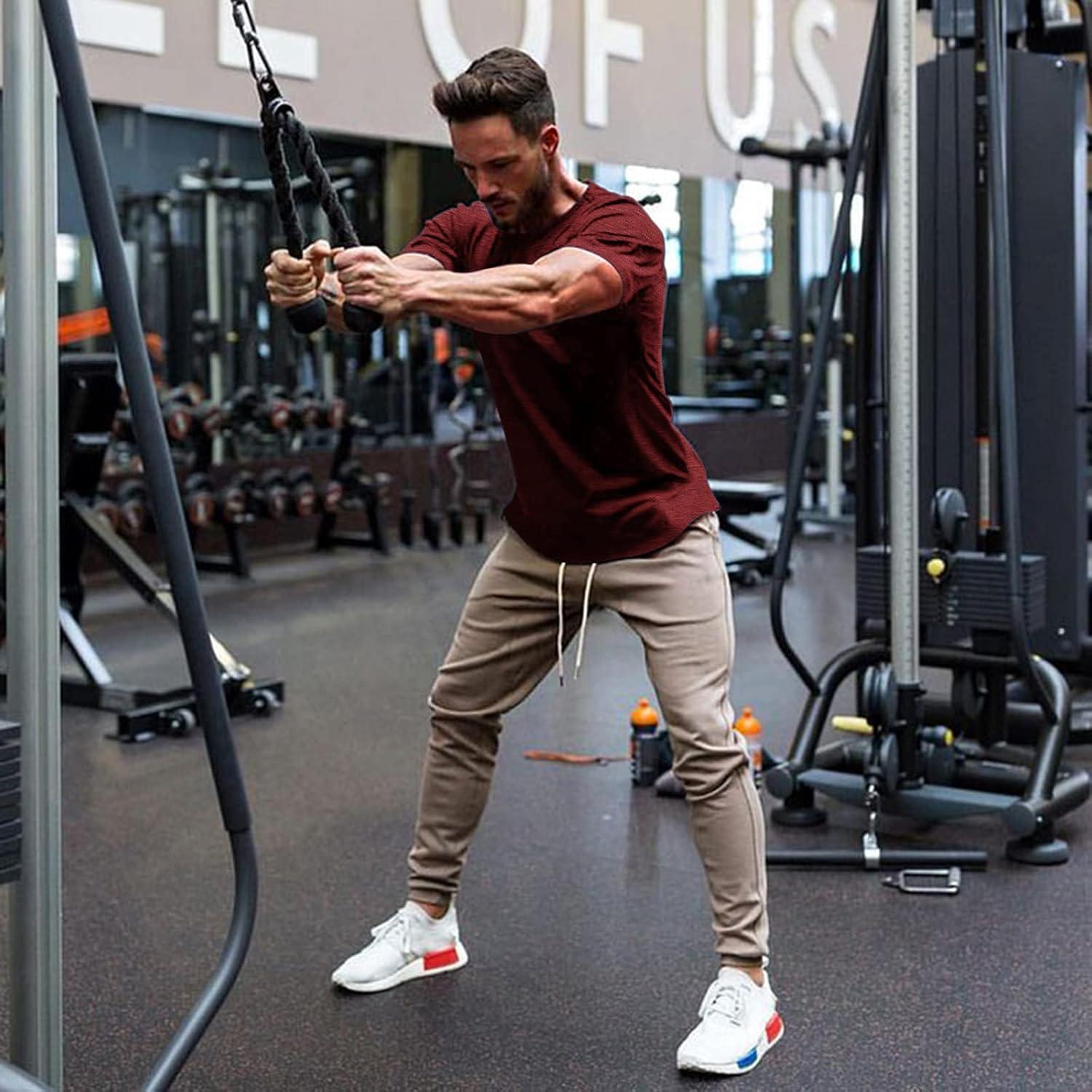 imageCOOFANDY Men Muscle Workout T Shirt Gym Bodybuilding Active Short Sleeve Tee Top BlackTwo Pack Wine RedBlue