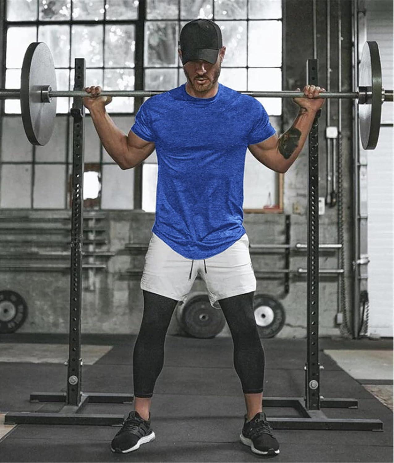 COOFANDY Men Muscle Workout T Shirt Gym Bodybuilding Active Short Sleeve Tee Top Black(One Piece- Dark Blue)