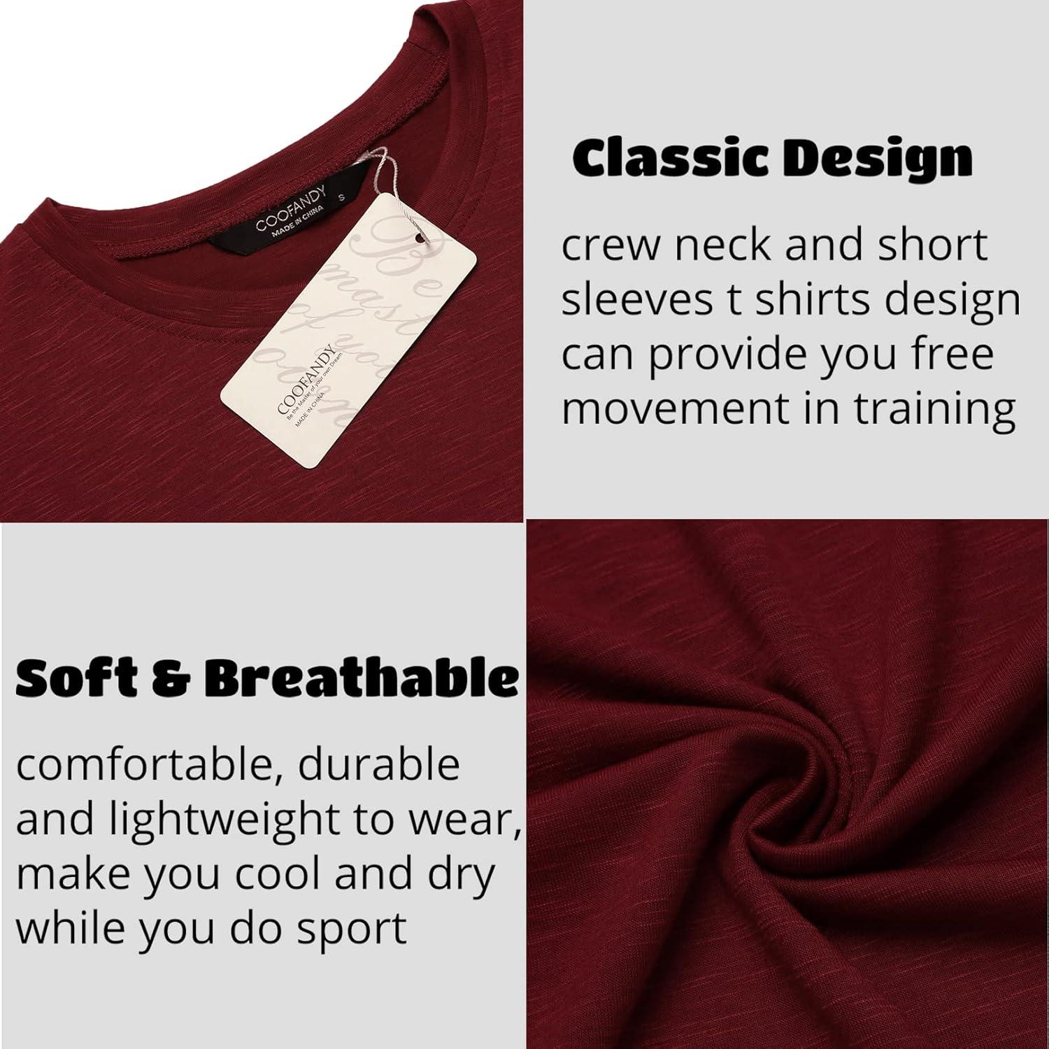 COOFANDY Men Muscle Workout T Shirt Gym Bodybuilding Active Short Sleeve Tee Top Black(Two Pack- Wine Red/Blue)