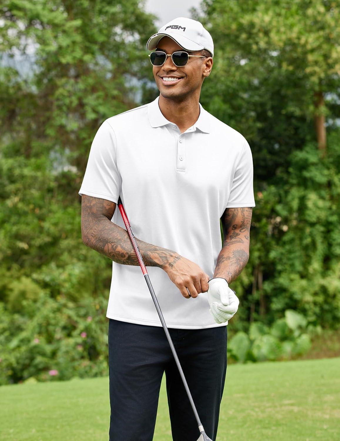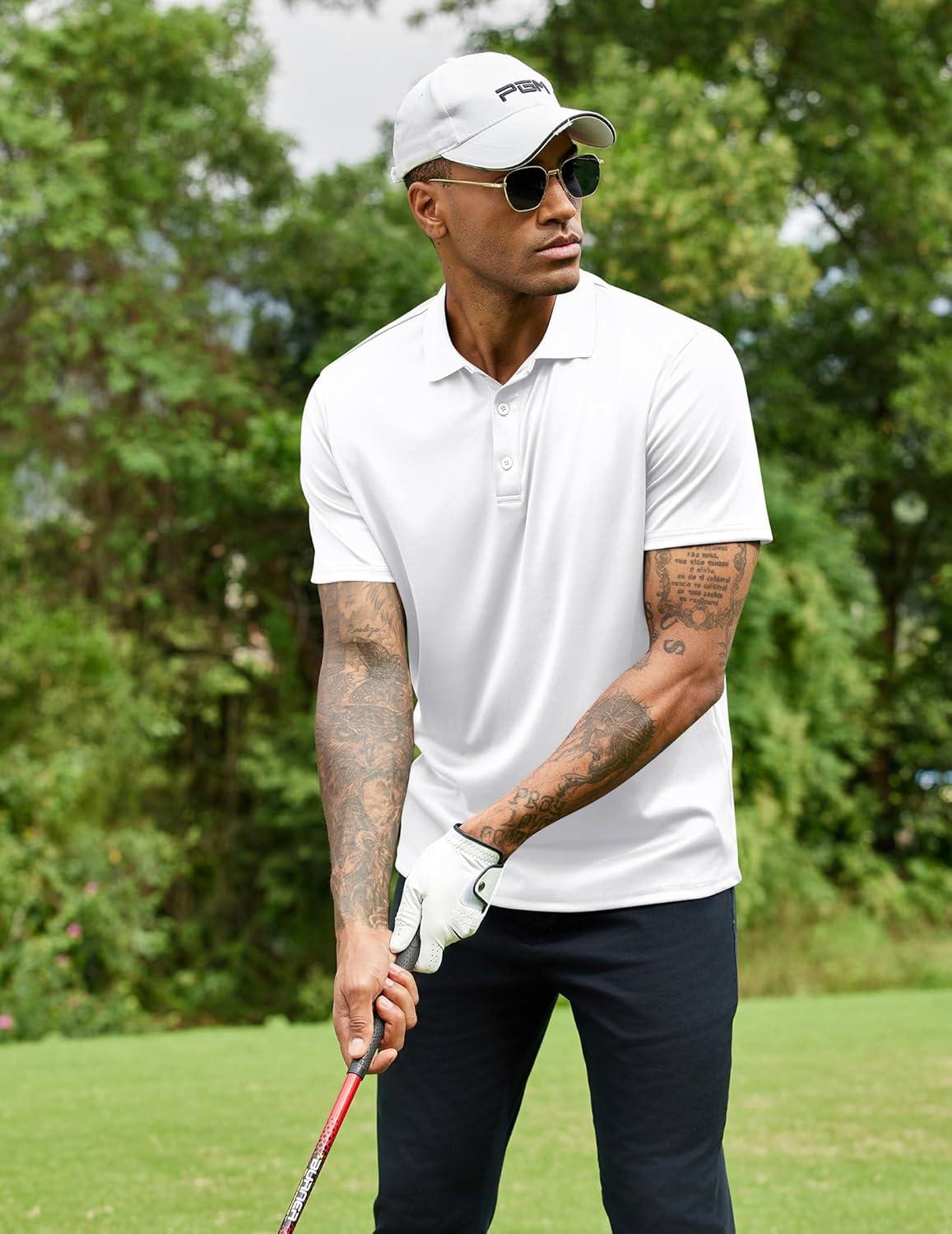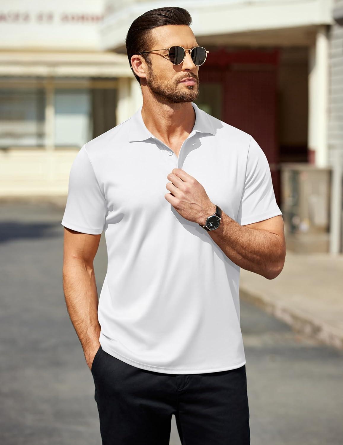 COOFANDY Men Polo Shirts Short Sleeve Quick Drying Athletic Collared Golf Shirts Moisture Wicking Tees(White)