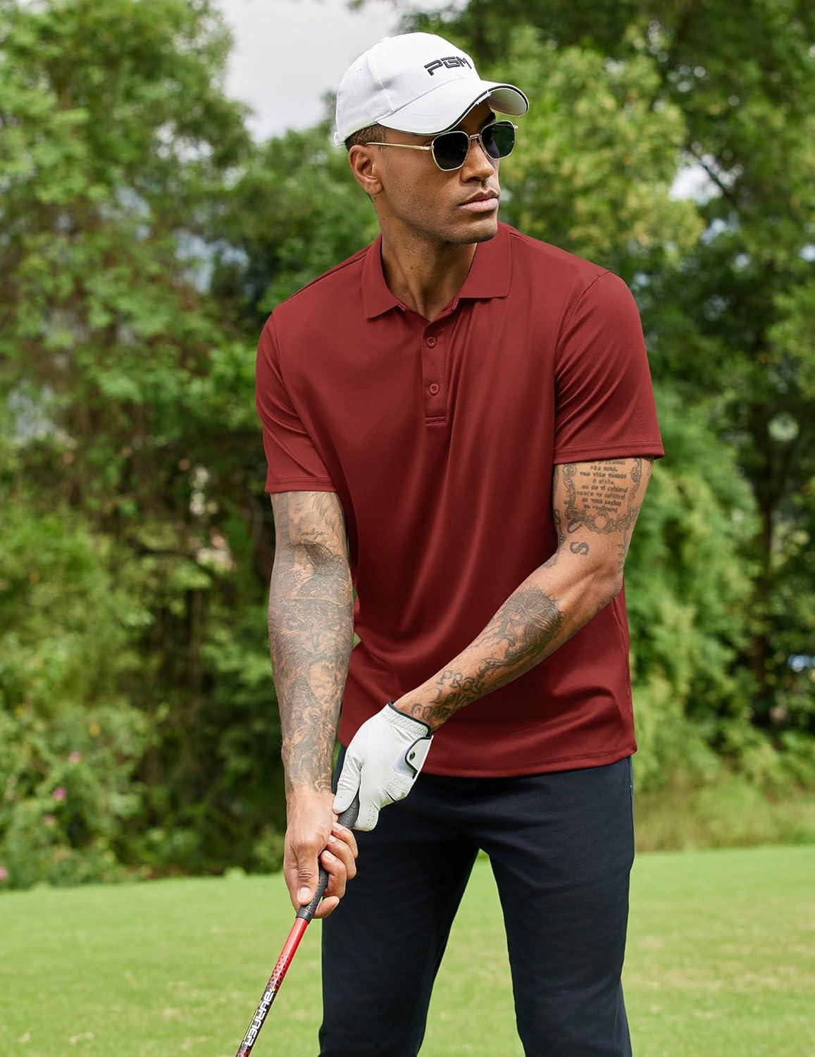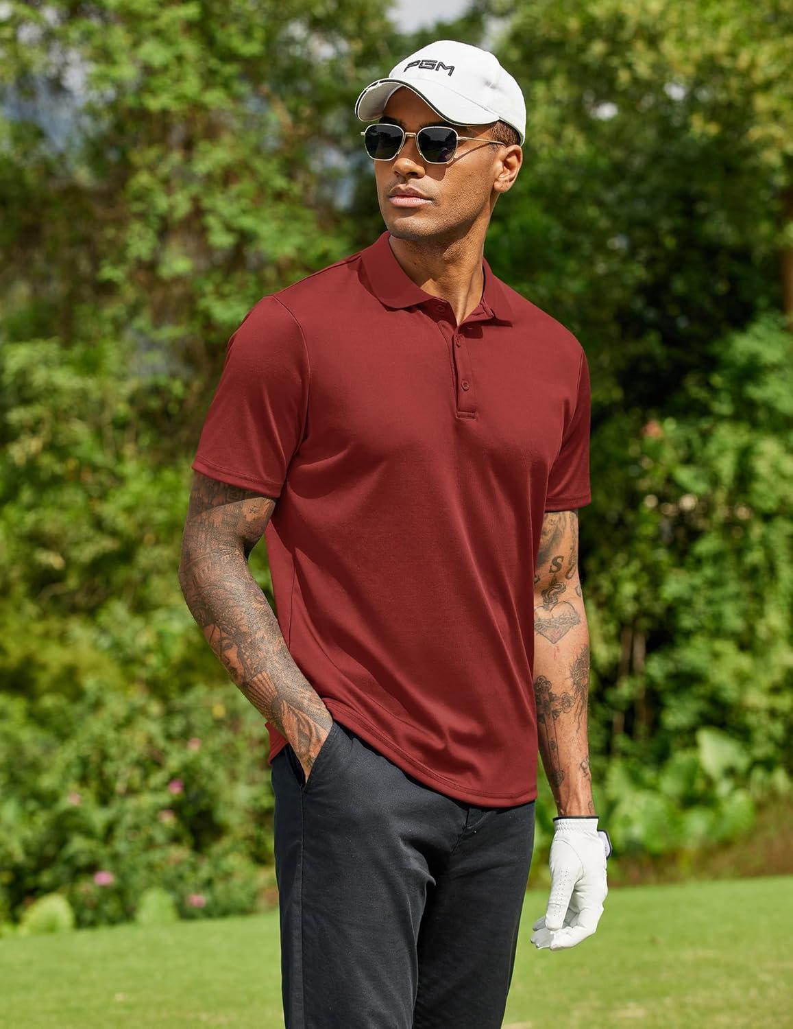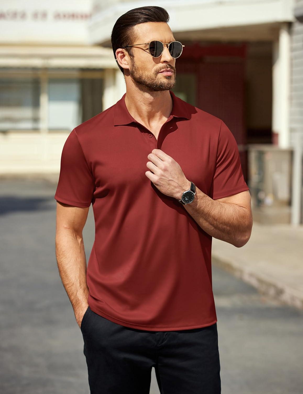 COOFANDY Men Polo Shirts Short Sleeve Quick Drying Athletic Collared Golf Shirts Moisture Wicking Tees(Wine Red)