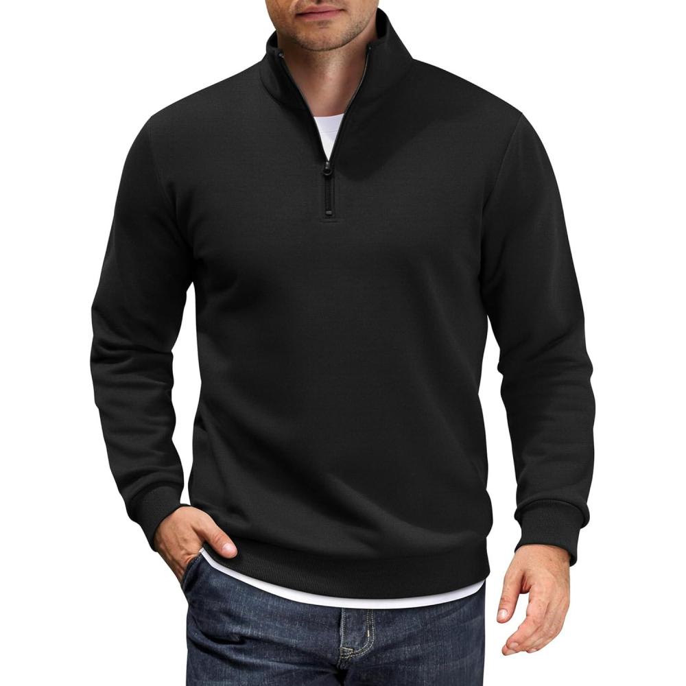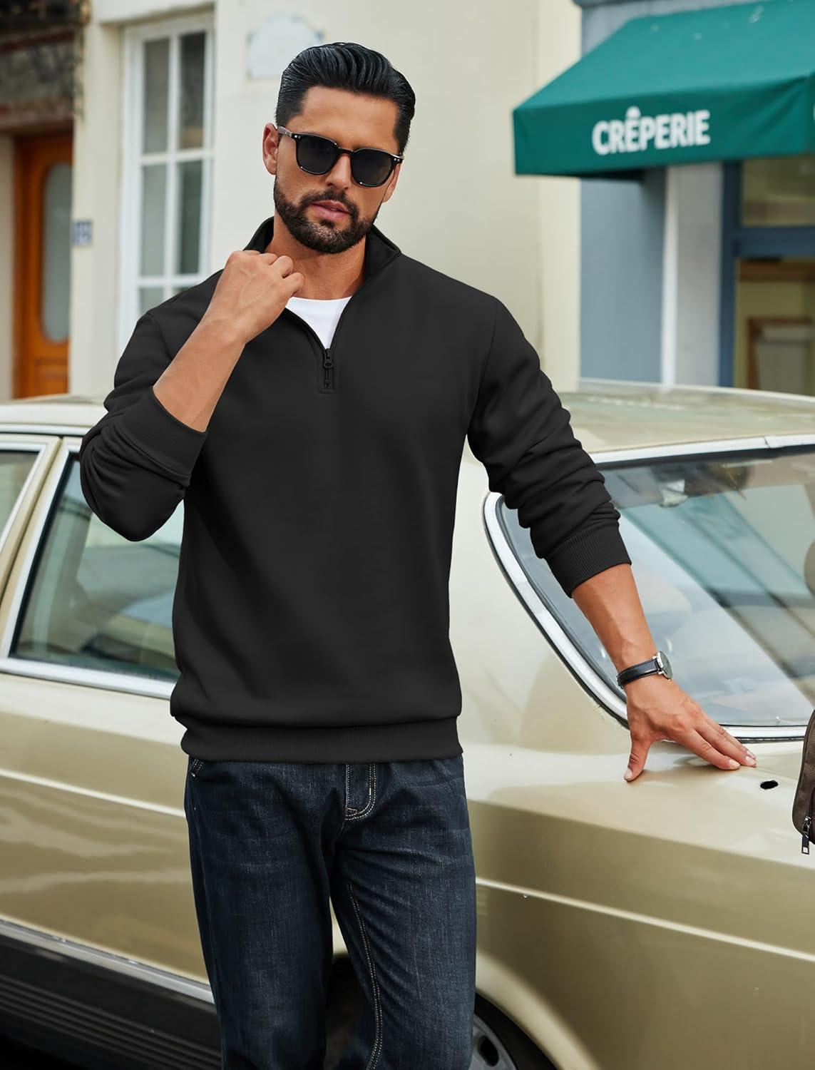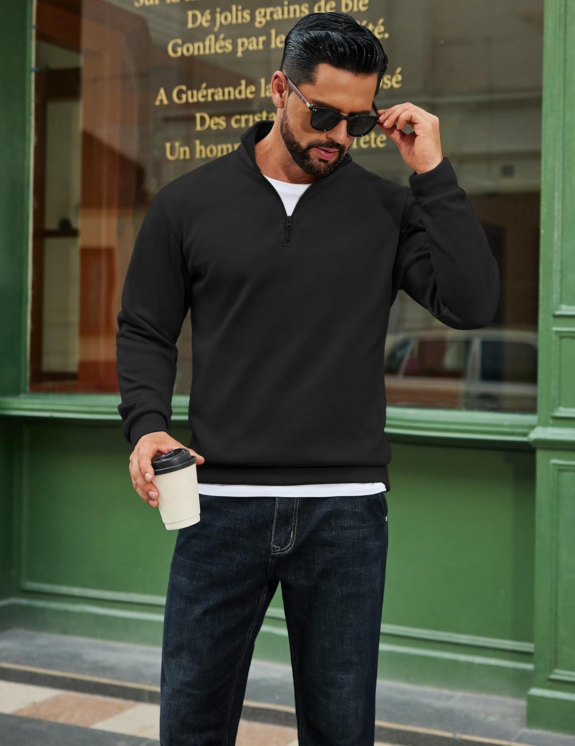 COOFANDY Men Quarter Zip Up Pullover Lightweight Mock Neck Sweatshirt Casual Active Long Sleeve Polo Shirt(Black)