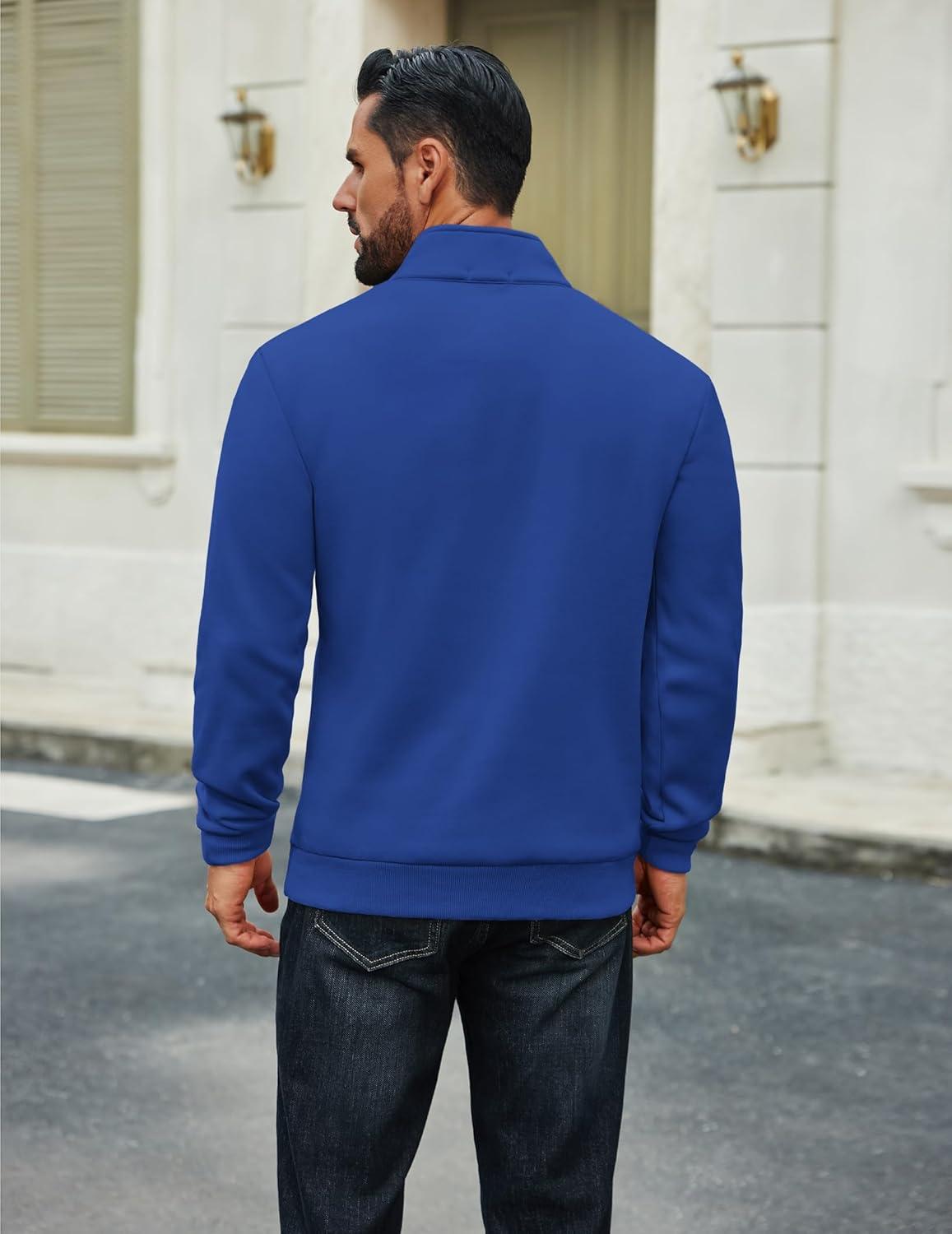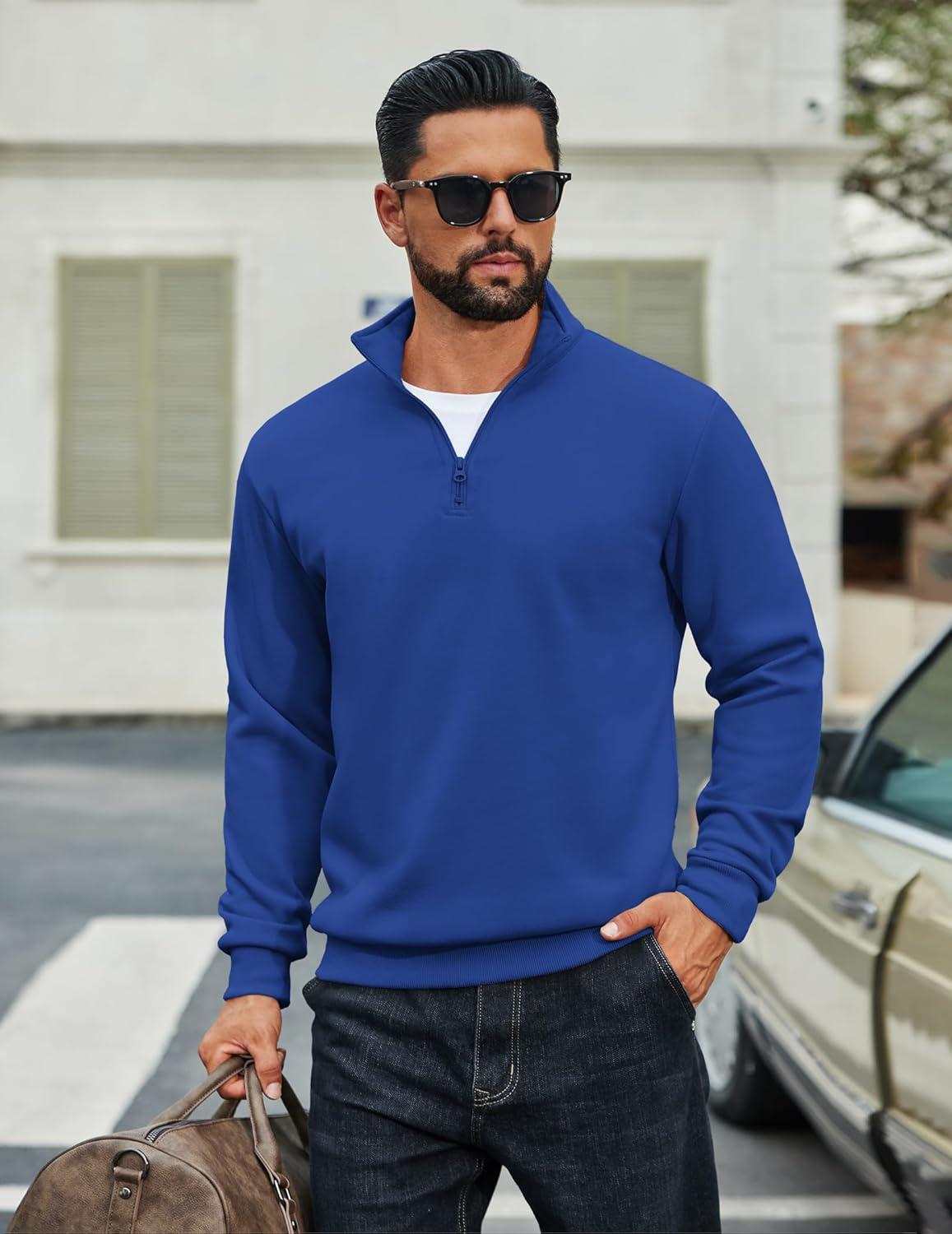 COOFANDY Men Quarter Zip Up Pullover Lightweight Mock Neck Sweatshirt Casual Active Long Sleeve Polo Shirt(Sky Blue)