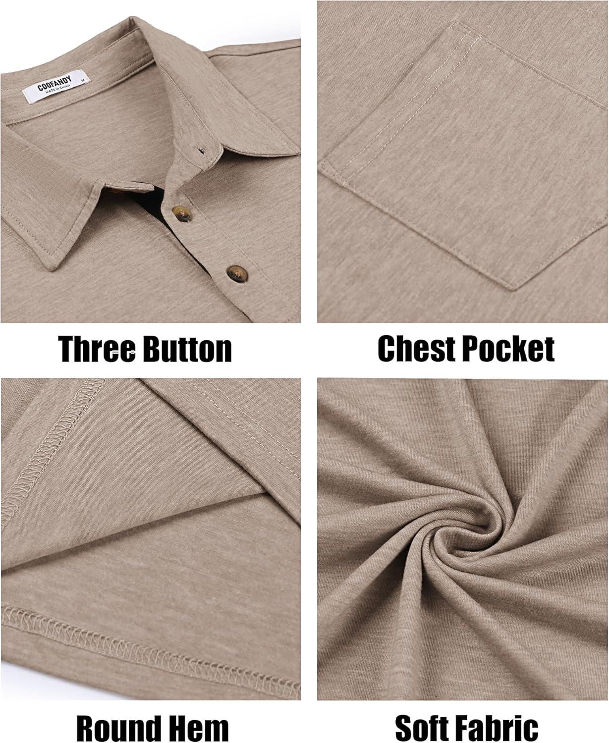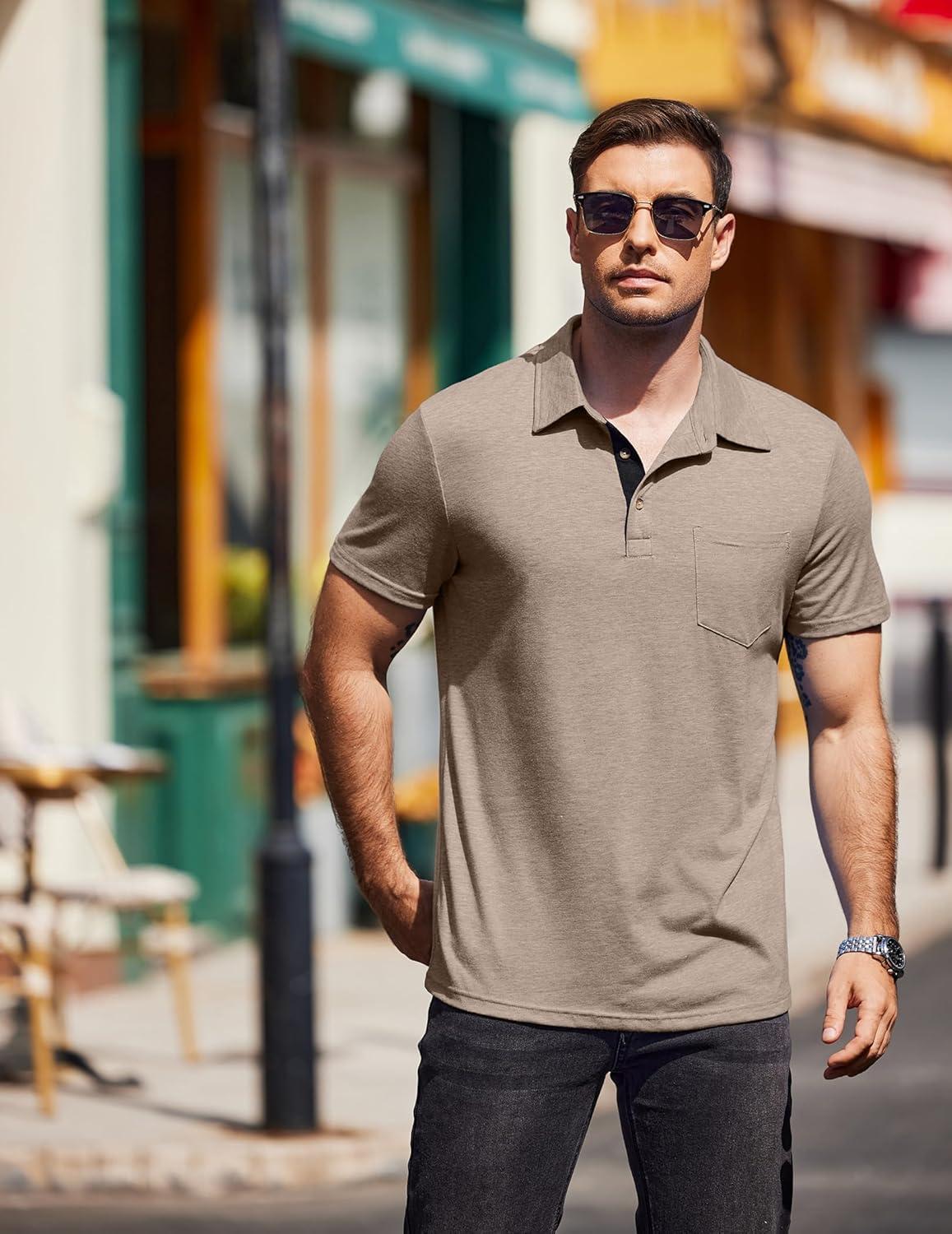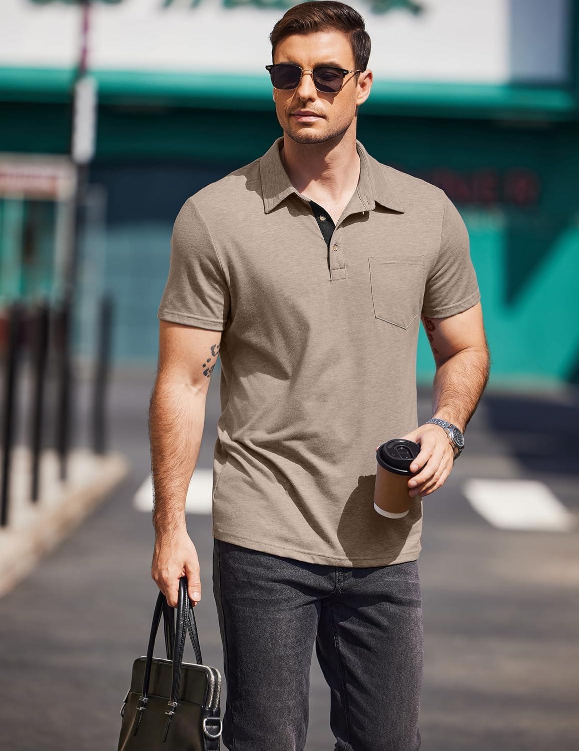 COOFANDY Men Short Sleeve Polo Shirt Casual Summer Collar Shirts Dress Button Polo T Shirt Classic Golf Shirts(Khaki)