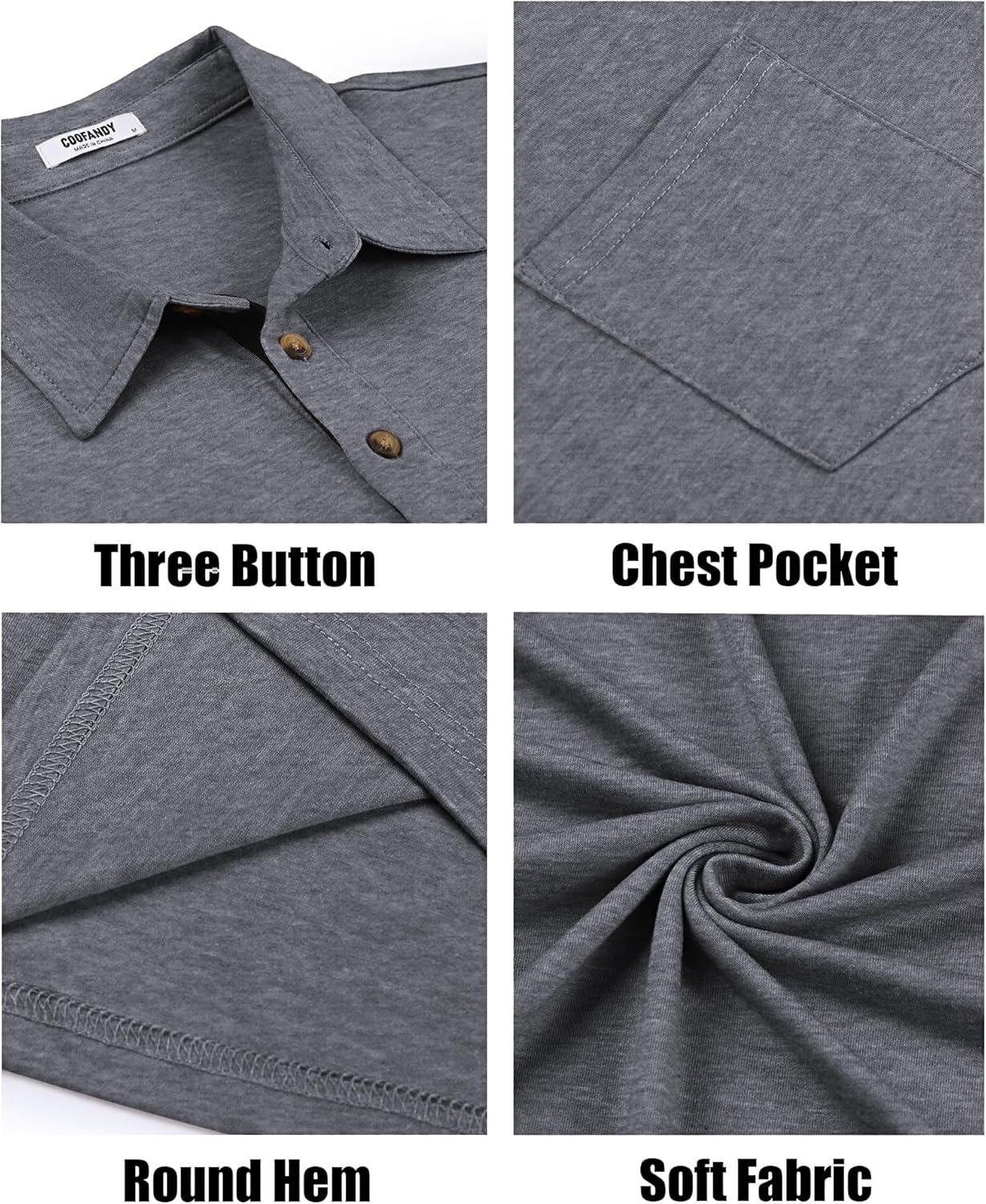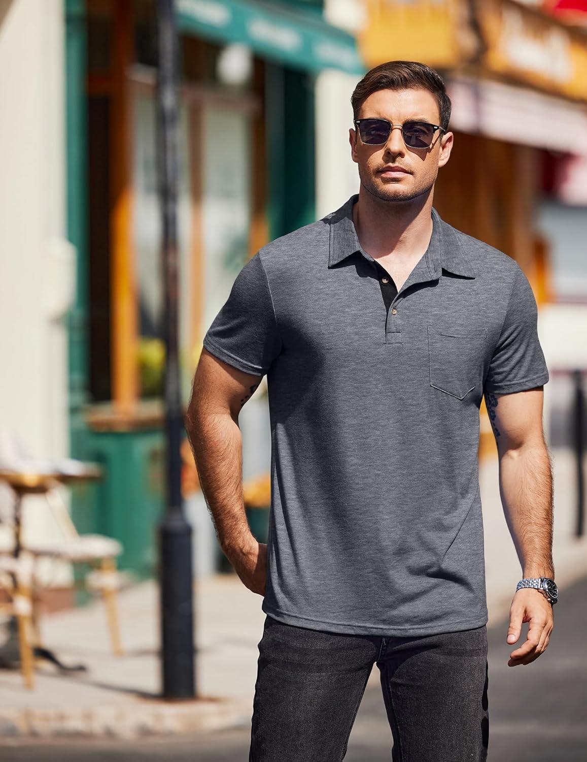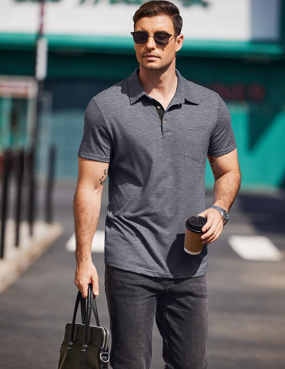 COOFANDY Men Short Sleeve Polo Shirt Casual Summer Collar Shirts Dress Button Polo T Shirt Classic Golf Shirts(Grey)