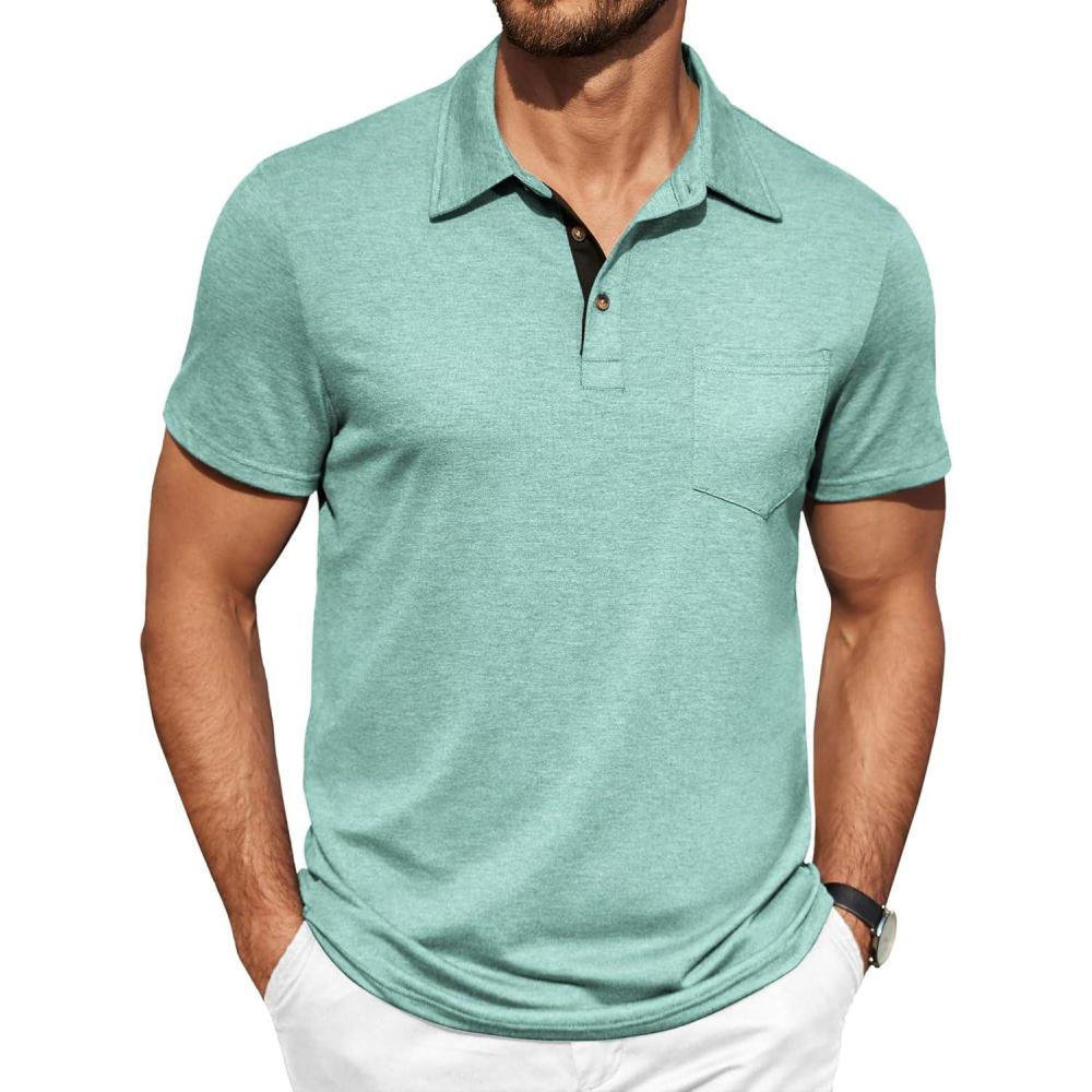 Save big on COOFANDY Men Short Sleeve Polo Shirt Casual Summer Collar Shirts Dress Button Polo T Shirt Classic Golf Shirts(Light Green) during our summer blowout sale. Limited quantities available.