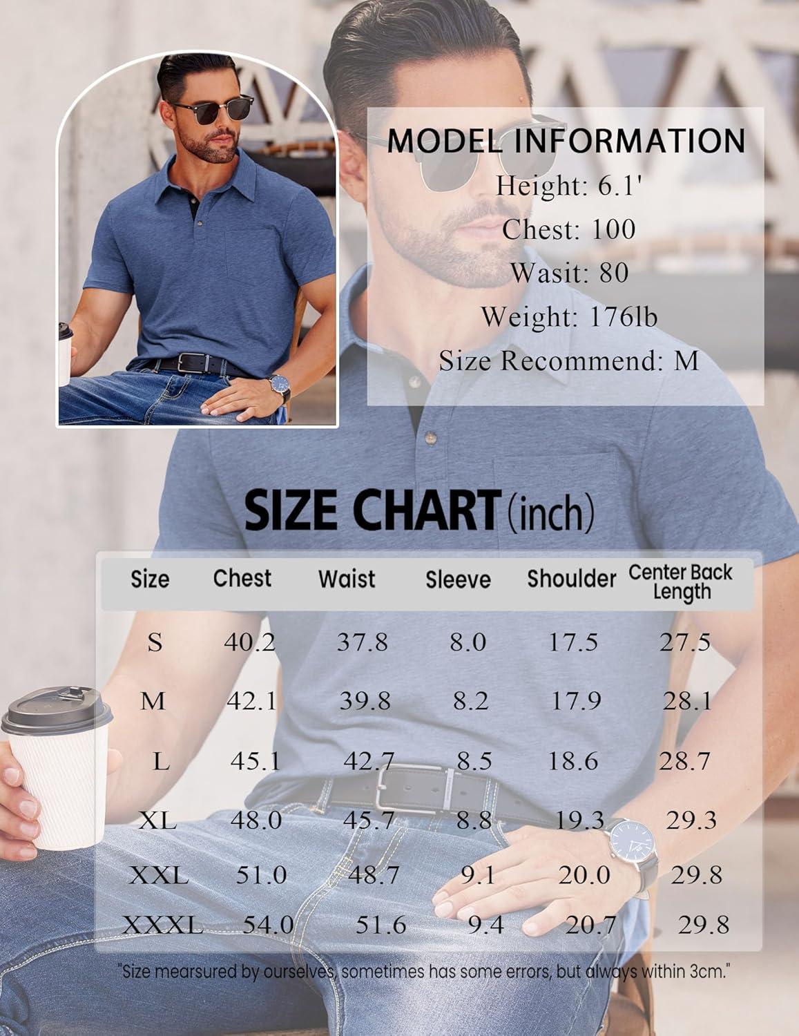 COOFANDY Men Short Sleeve Polo Shirt Casual Summer Collar Shirts Dress Button Polo T Shirt Classic Golf Shirts(Black)